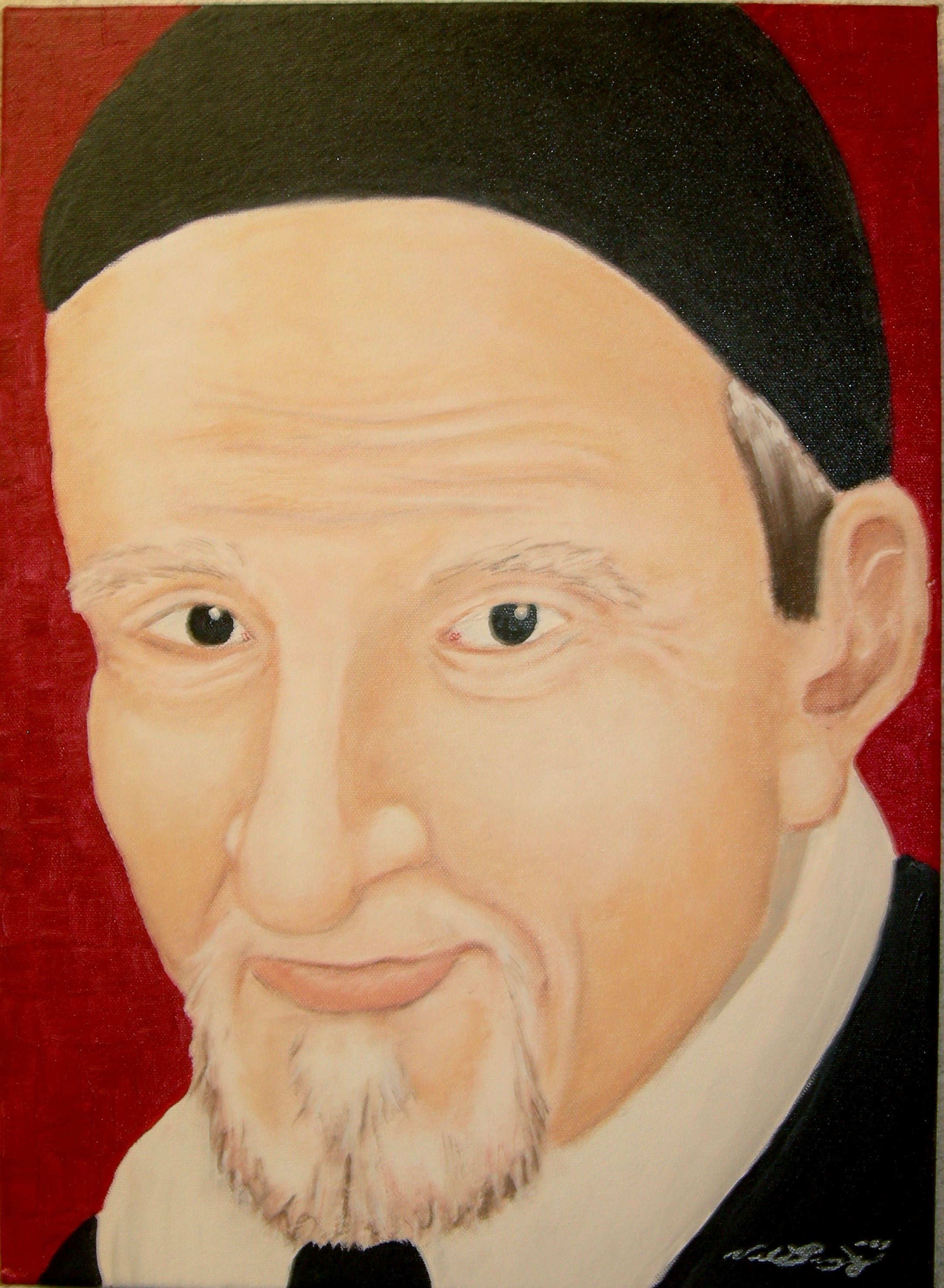 Vincent de Paul, head, red background; original in Vincentian house, Arsenal St., St. Louis