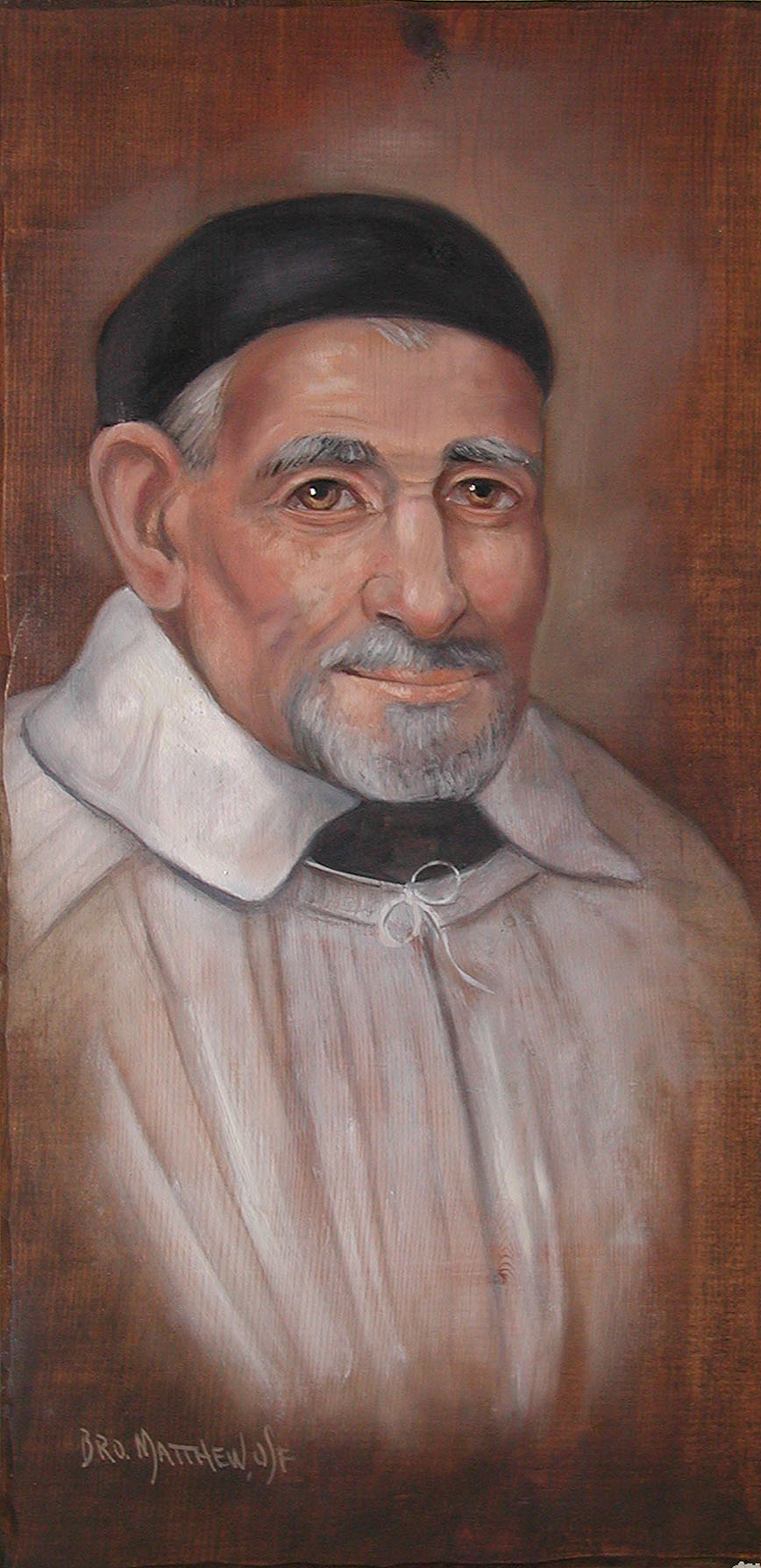 Painted wood panel; Vincent de Paul, cassock, surplice; artist: Bro. Matthew, OSF; original at St. Mary's of the Barrens, Perryville