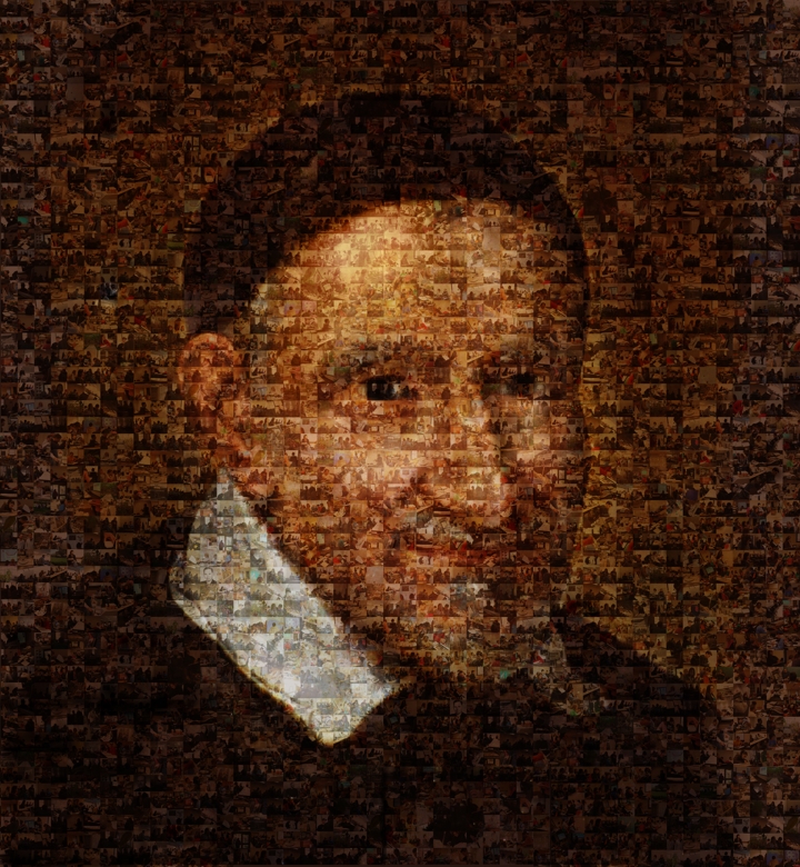 St. Vincent mural, composed of photographs of faculty and students of physical sciences