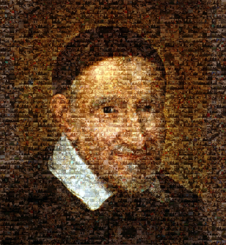 St. Vincent mural, composed of photographs of faculty and students of physical sciences