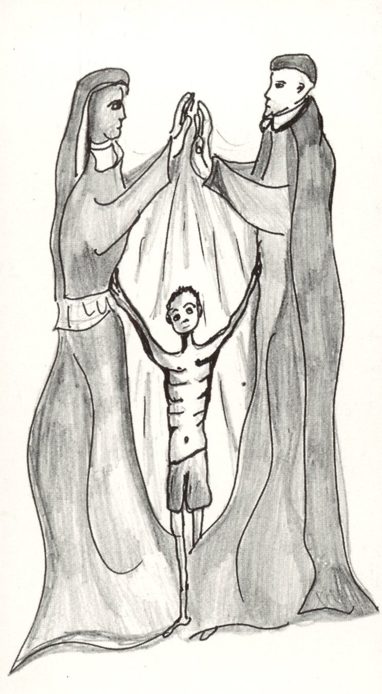 Vincent de Paul and Louise de Marillac, sheltering child