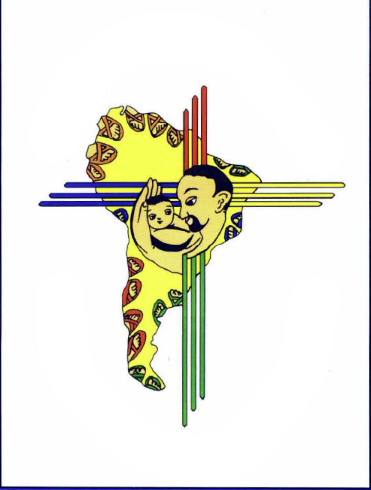 Vincent de Paul holding child; feet of country people around edges of the map of South America