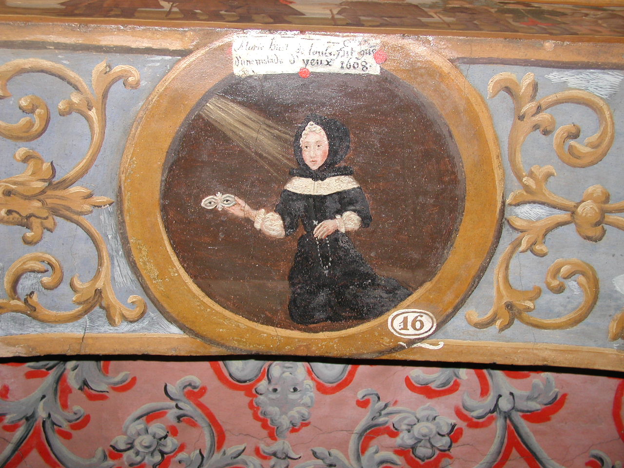 Woman in widow's clothing, similar to Louise de Marillac's hood In church of Notre-Dame de Garaison