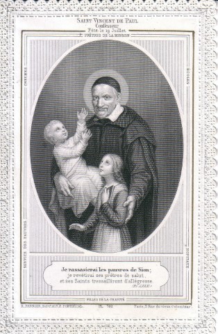 501, multiple languages 502, German 503, French, after 1885 504, French, German, embossed 505, embossed 506, German, Austria 507, French, embossed 508, German 509, Spanish, embossed 510, French 511, French, embossed 512, French, embossed 513 514, French, embossed 515 516, Spanish, embossed 517, French, English, embossed 518, Swiss, Monsiau model 519, Genoa 520 521, French 522, English 523, Latin text 524, French; SV de Paule [sic] 525, French, embossed 526 527 528, embossed 529 530, embossed 531, embossed 532 533, French 534, Italian 535, Italian 536, Italian Sisters, color 537, French 538, English, embossed 539, Italian 540, Italian 541, Latin 542 543, Swiss 544, French, embossed 545 546 547, French, Clichy 548, German, embossed 549, Italian 550, French, oval, SVd Paule [sic] 551, Italian, patronage 552 553, Swiss 554, French 555, French, embossed 556, Spanish woodcut 557, Latin name 558, Amiens 559, French 560, Swiss 561, French, embossed 562, French, embossed 563, French, Spanish 564, French 565, French 566, Dutch 567, French 568, Italian 569, Italian 570, French 571. French, embossed 572. French 573. Embossed 574. Reliquary in Paris; lace 575. German 576. Ladies of Charity 577, embossed 578, French 579 580, French 581, Italian 582, Italian 583, German 584, Belgian 585, Italian 586, French, Vincent in Africa 587, French 588, French 589, German 590, French, embossed 591, engraving 592, French 593 594, French, embossed 595 596, old 597, Italian 598, French, embossed 599, Gerrman text, lace 600, Italian