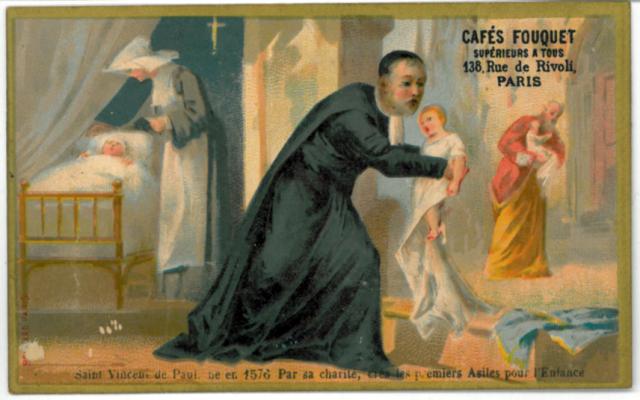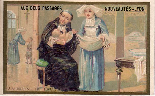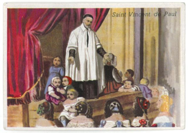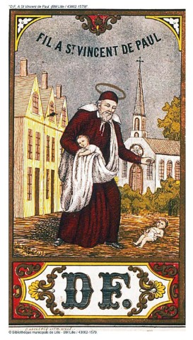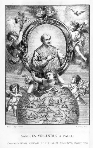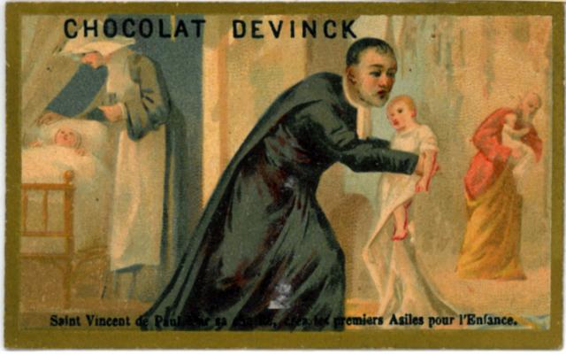 401. Publicity poster, Vincent de Paul with poor 402. Publicity, chocolate, Abbey of Igny 403. Publicity, Chocolate, Aiguebelle 404. Publicity, Chocolate 404a. Publicity Chocolate rev 405. Publicity, Chocolaterie St Vincent de Paul 406. Publicity, Chocolates 407. Publicity, Elixir, with Sister 408. Publicity, Elixir 409. Publicity, Gunth 240, Potin 410. Publicity, Gunth 241 411. Publicity, Gunth 242 412. Publicity, Gunth 243 413. Publicity, Gunth 244 414. Publicity, Gunth 245 415. Publicity, Gunth 246 416. Publicity, Gunth 247 417. Publicity, Gunth 249 418. Publicity, Gunth 249a, DePaul Univ 419. Publicity, Gunth 250 420. Publicity, Gunth 293 421. Publicity, Lottery ticket, French heroes 422. Publicity, Lyons 423. Publicity, no name 424. Publicity, tercentenary, 1960 425, Publicity, thread 426, Publicity, Elixir 427. Vincent de Paul and foundlings, wall paper 428. Vincent de Paul and foundlings, handcolored 429. Results of Seduction, by Antoine Béranger, 1840 430. Vincent de Paul and Poland 431. Vincent de Paul caring for poor in missions 432. Vincent de Paul comforting two children, oval 433. Vincent de Paul contemplates crucifix, by Carbonnier 434. Vincent de Paul gathering foundlings, Daughter of Charity 435. Vincent de Paul gives foundlings to Sisters, French, Spanish 436. Vincent de Paul gives foundlings to Sisters 437. Vincent de Paul giving alms, Jesus in background 438. Vincent de Paul giving blessing 439. Vincent de Paul helping poor (without name) 440. Vincent de Paul helping poor, Almanac 1939 441. Hungary 442. Vincent de Paul present foundlings, at Notre Dame de Paris 443. Vincent de Paul with begging bag 444. Vincent de Paul with burning heart of charity 445. Vincent de Paul with foundlings, oval 446. Vincent de Paul with infant, Daughter of Charity, 1 447. Vincent de Paul with infant, Daughter of Charity, 2 448. Vincent de Paul with one child, red vest 449. Vincent de Paul, almanac detail 450. Vincent de Paul, Beatitudes 451. Vincent de Paul, Beatitudes, large, book cover 452. Vincent de Paul, Bracci engraving 453. Vincent de Paul, bust 454. Vincent de Paul, canonization feast days 455. Vincent de Paul, drawing by Bascun 456. Vincent de Paul, Duvic cover 457. Vincent de Paul, early engraving 458. Vincent de Paul, foundlings, DPU 459. Vincent de Paul, foundlings 460. Vincent de Paul, Hunermann cover 461. Vincent de Paul, in archway 462. Vincent de Paul, Labory portrait 463. Vincent de Paul, Louise de Marillac and foundlings, Philippe 464. Vincent de Paul, Louise de Marillac and Sisters 465. Vincent de Paul, Monsiau engraving 1817 466. Vincent de Paul, Monsiau engraving, 19 July 467. Vincent de Paul, oval portrait in Gobillon, Collet 468. Vincent de Paul, portait bust about 1800 469. Vincent de Paul, Renaudin cover 470. Vincent de Paul, three children 471. Vincent de Paul, work for infants 472. Vincent de Paul. Latin America 473. Vincent de Paul, Gothic archway 474. Vincent de Paul, early engraving 475. Vincent de Paul, founder of Foundling hospital 476. Vincent de Paul, Louise de Marillac 477. Death of Vincent de Paul 478. Italian engraving, Latin text 479. Vincent de Paul, foundlings in snow 480. Sleeping child, crucifix 481. Cover of musical score 482. Salon of 1840 483. France, Love, Peace, Joy 484. Vincent de Paul holding an infant 485. Italian 486. French Priest 487. Chartres hospital 488. Desrochers engraving, early likeness 489. Woodcut, Patrick de Monceau 490. Dunand original 491. Hungarian. Vincent, Mary, St. Louis 492. Fraternity 493. Yellow drawing 494. Apostle of Charity 495. Epinal image 496. Lallemant 497. Spanish name 498, Jean le Vacher 499. Blessing Clichy 500. Italian engraving