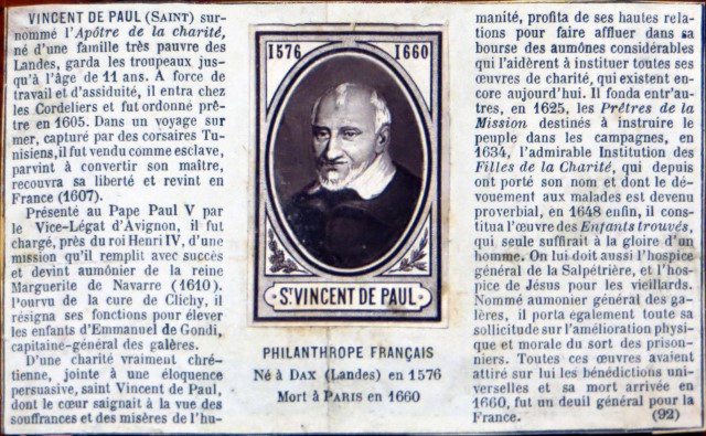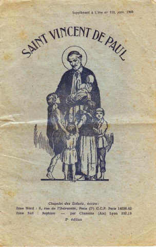 701, Chalumeau (148) 702, Chalumeau (149) 703, Chalumeau (150) 704, Chalumeau (151) 705, Chalumeau (152) 706, Chalumeau (153) 707, Chalumeau (156) 708, Chalumeau (157) 709, Chalumeau (158) 710, Chalumeau (159) 711, Chalumeau (160) 712, Chalumeau (161) 713, Chalumeau (162) 714, Chalumeau (163) 715, Chalumeau (164) 716, Chalumeau (165) 717, Chalumeau (166) 718, Chalumeau (167) 719, Chalumeau (168) 720, Chalumeau (169) 721, Chalumeau (170) 722, Chalumeau (171) 723, Chalumeau (172) 724, Chalumeau (173) 725, Vincent and a child 726, Strasbourg, Altdorff drawing 727, Laisne engraving 728, Clichy, cartoon 729, commercial 730, magazine illustration 731, Monsiau version 732, fundraising for foundlings 733, Escaping from Tunis 734, French philanthropist 735, French 736, Strasbourg 737, Strasbourg 738, Strasbourg 739, Paris, illuminated page 740, publicity 741, publicity, reverse 742, French 743, Vincent collects abandoned children 744, German 745, French 746, French 747, French 748, Vincent de Paul and other personnages 749, Vincent de Paul and vignettes for his life 750, Barth, Vincent de Paul woodcut 751, publicity, Johnson Cologne 752, French 753, French, Translation of relics 1830 754, French, leaflet 755, French engraving 756, French, Latin text 757, French, Edelinck 758. Vincent de Paul drawing, by GH, 2007 759, France, Thann, museum 760, France, Berceau, 1981 761, France, by Eric de Launay 1891 762, Society of SVdP, France 763, 1960 drawing 764, engraving from a book 765, charitable child, publicity 766, Founder of Foundling Hospital 767, preparing soup in a hospital 768 769, True Image, Venerable Servant of God 770, Vincent de Paul with large book 771, France, Charles-Nicolas Cochin, II 772, Lottery ticket for chapel, orphanage, etc, at Pouy 773, soap publicity 774, chocolate publicity, front 775, chocolate publicity, back 776, anemia publicity, 1905 777, publicity, 1951 778, Vincent de Paul with foundlings 779, book cover 780, book cover, undated 781, book cover, coloring book 782, poster, Help for Abandoned Children 783, book cover 784, book cover 785. book cover, comic book 786, book cover 787, France, Translation relics, 25 Apr 1830 788, publicity, without added names 789, with foundlings, street scene 790, M. Vincent, chaplain general of the galleys 791, date and signature of artist prisoner 792, logo with Christmas bells on a Christmas card 793, French, chocolate publicity 794, French school book, care for galley prisoners 795, Mr. Vincent de Paul, before beatification 796, VdP in heaven, with women begging for their children 797, VdP, portrait drawing, in surplice, without skullcap 798, SVdP with burning heart of charity, 1785, 799, SVdP with LdM and Strasbourg Sisters, aiding the poor 800, Founder, Epinal, see 175