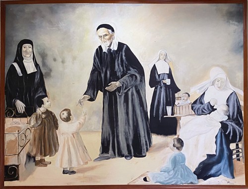 Badajoz, Vincent de Paul eats with poor, edited Badajoz, Vincent de Paul eats with poor Barcelona, Vincent de Paul with sinners Cadiz, Vincent de Paul and poor Cadiz, Vincent with poor, sisters, edited 1 Cadiz, Vincent with poor, sisters, edited 2 Cadiz, Vincent with poor, sisters Granada, Vincent de Paul and children Granada, Vincent de Paul, Louise de Marillac and children Las Palmas, Vincent de Paul bringing children to Louise de Marillac Las Palmas, Vincent de Paul sends out charity Limpias, Colegio SVdP Madrid, Anne of Austria and earrings Madrid, Anne of Austria gives crown and jewelry 2 Madrid, Anne of Austria gives jewelry Madrid, Anne of Austria, newspaper Madrid, Carabanchel 1 Madrid, Carabanchel 2 Madrid, Patronage, details (1) Madrid, Patronage, details (2) Madrid, Patronage, details (3) Madrid, Patronage, details (4) Madrid, Patronage, details (5) Madrid, Patronage, details (6) Madrid, Patronage, details Madrid, VdP and Louise de Marillac 1 Madrid, VdP and Louise de Marillac 2 Madrid, VdP, deathbed Madrid, Vincent and a child with large head Madrid, Vincent blesses his works Madrid, Vincent de Paul about galley Madrid, Vincent de Paul and miracles Madrid, Vincent de Paul and vision of globes Madrid, Vincent de Paul blesses his works Madrid, Vincent de Paul blesses works, DC copy-a Madrid, Vincent de Paul giving rules, children Madrid, Vincent de Paul preaching, hospital Madrid, Vincent de Paul visits galley prisoners Madrid, Vincent de Paul, Francis de Sales, Sisters Madrid, Vincent de Paul, peacemaker Madrid, Vincent sends Sisters on mission Madrid, Virgin Mary and Vincentian family Mataró, Vincent de Paul with poor Palma de Mallorca, hospital Palma de Mallorca, Vincent de Paul and the Tuesday Conference members Palma de Mallorca, Vincent de Paul in glory Pamplona Vincent de Paul dying, detail Pamplona Vincent de Paul dying Pamplona, Vincent de Paul on galley Pamplona, Vincent de Paul, Ladies of Charity, foundlings Pamplona, young Vincent de Paul gives grain Puerto de Sta Maria, Vincent and child San Sebastian, Vincent de Paul and poor San Sebastian, Vincent de Paul blesses works Santiago de Compostela, Vincent and poor Seville, Vincent de Paul and a poor man Sineu, Mallorca, Ladies of Charity Sineu, Mallorca Spain 01, Andrès Cortès y Aguilar, Charity of SV Spain 02, VdP blessing works of Sisters Spain 03, VdP with orphans Spain 04, Vincent de Paul and Vincentian family Spain 05, Vincent de Paul gives rules Spain 06, Vincent de Paul with a child Spain 07, Vincent de Paul, detail Spain 08, Vision of VdP Spain 09, Glorification of SVdP Spain 10. VdP, presentation canvas, 1865 Spain 11, Young VdP Spain 12 Spain 13 Spain 14, 19th century Spain 15, 17th century Spain 16, 20th century Spain 17, Catalan school Spain 18 Viet Nam, Da Lat, copy, mural, from Granada, Spain Vitigudino, Vincent de Paul and his works Zaragoza, Vincent de Paul and rules Zaragoza, Vincent de Paul at sickbed Zaragoza, Vincent de Paul blesses works of Sisters Zaragoza, Vincent de Paul blesses works, detail 1 Zaragoza, Vincent de Paul blesses works, detail 2 Zaragoza, Vincent de Paul blesses works, detail 3 Zaragoza, Vincent de Paul blesses works Zaragoza, Vincent de Paul distributes rules, detail 1 Zaragoza, Vincent de Paul distributes rules, detail 2 Zaragoza, Vincent de Paul distributes rules Zaragoza, VIncent de Paul with children, detail Zaragoza, Vincent de Paul with children