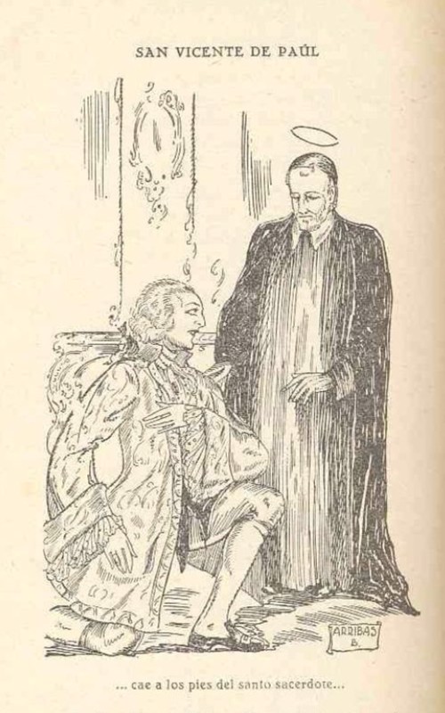 01. Title page 02. Vincent and Marguerite de Valois 03. Ladies of Charity 04. Almsgiving 05. Vincent and sick 06. Vincent and vision of globes 07. Vincent and Anne of Austria 08. Death of Vincent de Paul 09. Virtues of Vincent de Paul proclaimed 10, Fell at his feet 11, as galley rower 12, helping the victims 13. With Cardinal Richelieu 14. Vincent at death