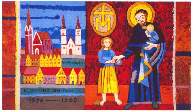 Austria mural Graz, Chapel of Mercy Graz, detail from wall painting, CM house Graz, glorification of Vincent de Paul Graz, seminary chapel Graz, Triptych, doors closed Graz, Vincent de Paul and child Graz, Vincent de Paul triptych, opened doors Graz, Vincent de Paul with poor at table-a Graz, Vincent de Paul with poor at table-b, large Graz, Vincent de Paul with poor at table, variation Graz, Vincent de Paul with poor at table Graz, Vincent de Paul, child, chapel Klosterneuburg, pilgrimage church, confessional chapel Salzburg-Riedenburg, Chapel of Sacred Heart hospital Schwarzach, ceiling painting Schwarzach, Vincent de Paul, Louise de Marillac, detail Schwarzach, Vincent de Paul, Louise de Marillac Vienna, Gumpendorf, family tree Vienna, Gumpendorf, Vincent blesses Sisters Vienna, Kaiserstrasse chapel Vienna, Kaiserstrasse, community chapel view and setting Vienna, Vincent de Paul mural Vienna, Vincent with children Vincent de Paul, by Johann Entfelder,1848- Vincent with a child Witten, Vincent de Paul and poor as Christ Zams hospital Zams, VdP with child and poor man Zams, Vincent de Paul, Holy Family