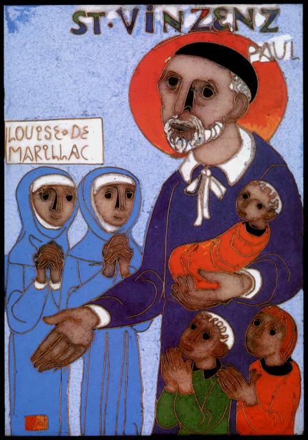 Austria, Voitsberg Brazil, Rio de Janeiro, DC museum China, Nanchang, Vincent de Paul and rules France, Strasbourg, enamel portrait, with book France, SVdP enamel on monstrance, close France, SVdP with 1 child, in snow France, SVdP with 2 children France, SVdP, enamel on monstrance France, SVdP, enameled pin Germany, Cologne, enamel, Vincent de Paul and bread Germany, Cologne, Vincent de Paul, Louise de Marillac Italy, Rome, General Curia Slovakia, Banska Bystrica, chalice base Spain, Madrid, Vincent de Paul, enamel Spain, painted enamel USA, CA, Los Angeles, SV hospital conservancy, monstrance USA, Chicago, DePaul, Enamel and marble Vincent de Paul and prisoner, enamel Vincent de Paul, enamels Vincent de Paul, grey enamel plaque Vincent de Paul, with poor boy, enamel