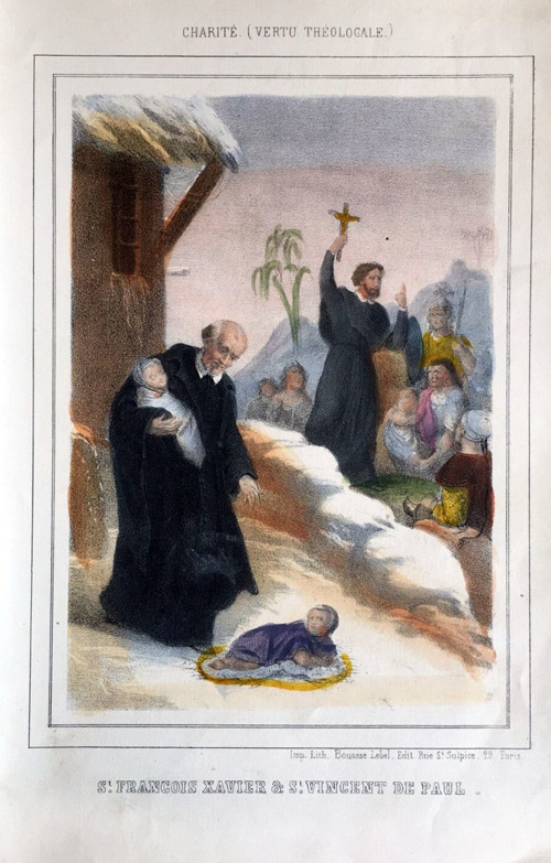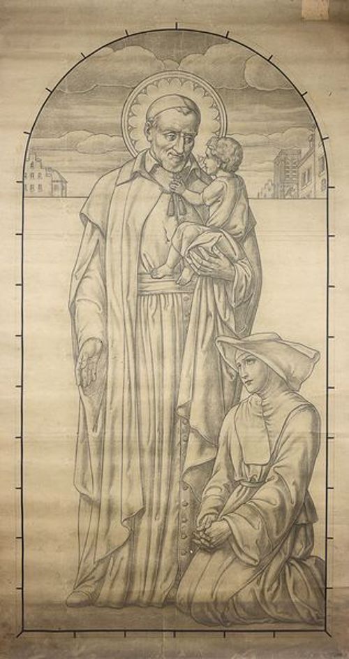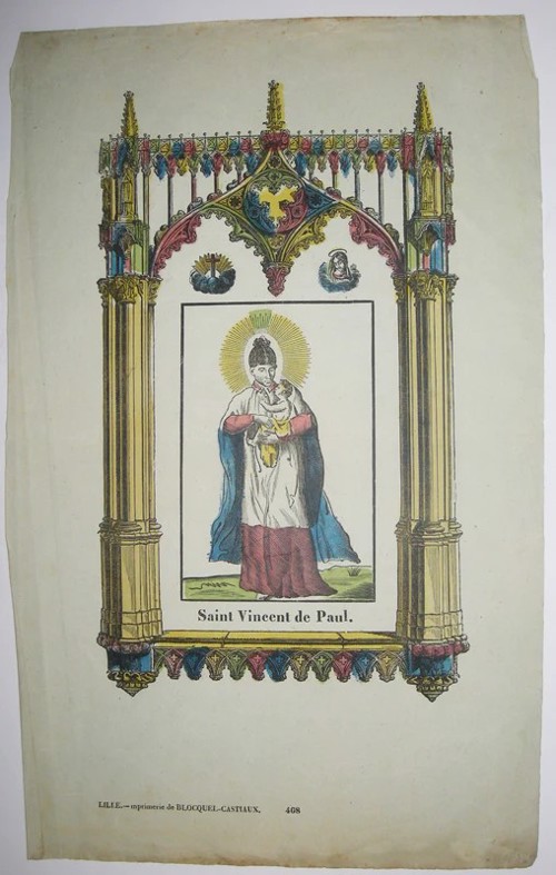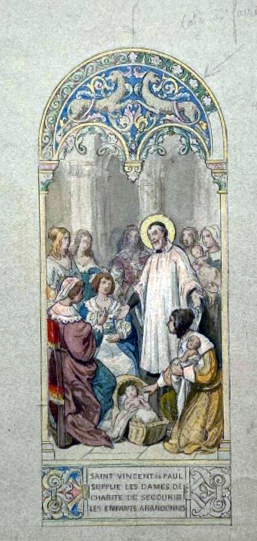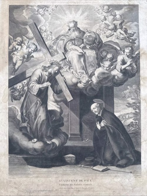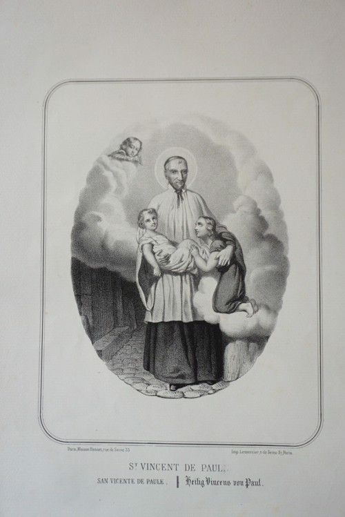 1000, Pen and ink drawing; VdP with woman, four children 1001, Prayer page, with hymn textss 1002, book cover 1003, poster for 2017 1004, book cover 1005. after a drawing by Chasselat; holding book 1006, poster 1007, VdP, Sisters feeding the poor 1008, book cover, the Little M. Vincent 1009, Vincent de Paul and Francis Xavier, charity 1010, Vincent de Paul, two children 1011, young VdP; ca. 1820 1012, SVdP as told to children 1013, Reding 1014, Collet book cover 1015, publicity, see 924 1016 1017, Portrait 1018, VdP with Ladies of Charity in the Hotel Dieu hospital, Paris 1019 1020 1021 1022 1023 1024 1025, after Monsiau 1026, with Francis de Sales, Jeanne de Chantal 1027 1028, for children 1029, First alms of Vincent de Paul 1030 1031, Fundraising engraving for SVdP church, Paris 1032, Drawing for a window 1033, drawing in pencil; signed Yennefer 1034, Pen and ink drawing 1035, Searchers of God, VdP, Sr. Rosalie Rendu, John XXIII 1036, book cover 1037, Tintin magazine cover, 1951 1038, Two children 1039, centennial of Society of SVdP in Haguenau 1040, Blessed VdP; blue stole 1041, white tots on green background 1042, VdP, foundlings, Ladies of Charity, Sisters 1043, Framed oval, VdP, children and family 1044, sketch for two panels 1045, cover 1046, Paris, Maison mere 1047 1048, We Need You 1049, book cover 1050, Ladies of Charity 1051, Paris, publicity, chocolate, Grondard 1052, Paris, Masonic document 1053, Misery in the 17th century 1054, book cover 1055, book cover 1056, poster (see 1048) 1057, At the deathbed of Louis XIII 1058, Vincent gathering foundlings 1059, VdP winking 1060, Vincent, like St. Joseph (in background) 1061, Vincent, with two children 1062, bill for chocolate at the SVdP chocolate producer, Marseilles 1064, by Salem-Carrière 1065, Vincent de Pau 1066, book cover 1067, VdP, Ladies of Charity, foundlings, Sisters 1068, VdP, with Ladies, gentlemen 1069, VdP, holding child 1070, VdP, musical duo 1071, VdP, Marriage of Heaven and Earth 1072, Lithograph 1073, engraving by Jean A. Renard, ca. 1800 1074, Evie Hone, unsigned, undated 1075, Diocese of . Versailles 1076, Vincent in heaven. 1077, holding biretta 1078, Vincent, three children 1079, pen drawing 1080, Pencil drawing 1081, watercolor 1082, Pencil sketch 1083, newspaper or magazine illustration 1084, sketch 1085, Care for sick prisoners, Louvre collections 1086, Louvre collections 1087 1088, Lille, Imagerie de, publishers 1089, SV and galley prisoner, dated 19 July 1940 1090, publicity, elixir SVdP 1933 (see 569 above) 1091, comic book cover, 2016 1092, Jamar, Dufaux 1093, Jamar, Dufaux, drawing 1094, Jamar, Dufaux, excerpt 1095, page 21, excerpt 1096, Jamar, Dufaux, excerpt, Vincent's quarter near the Nesle Tower 1097, Jamar, Dufaux, excerpt 1098, Jamar, Dufaux, excerpt 1099, Jamar, Dufaux sketch 1100, in presence of Holy Trinity, founder of the foundling hospital