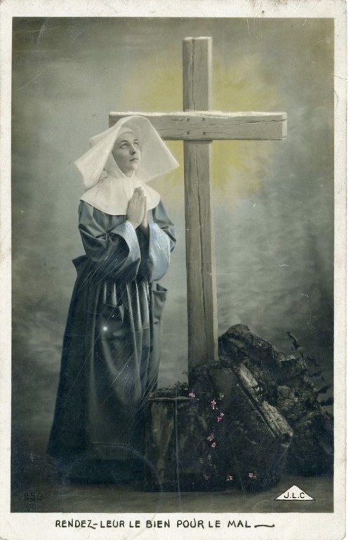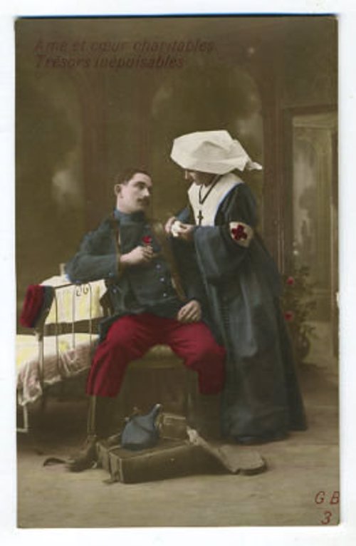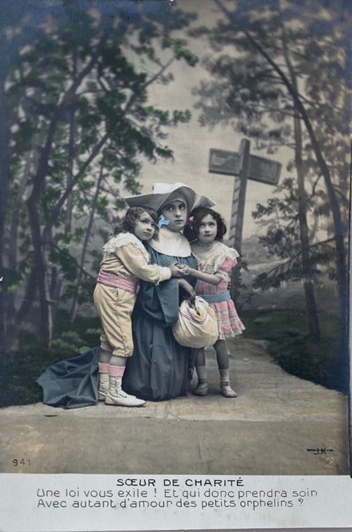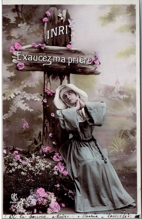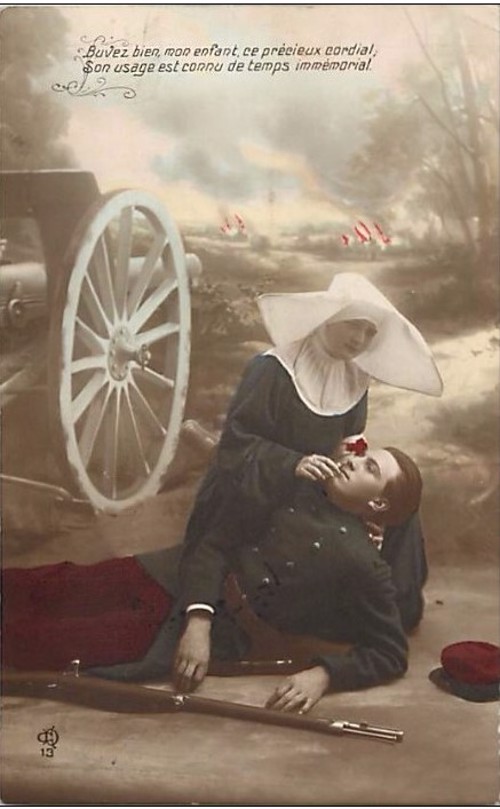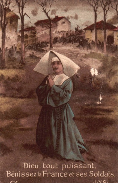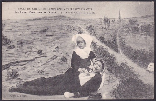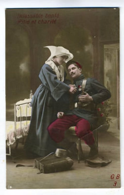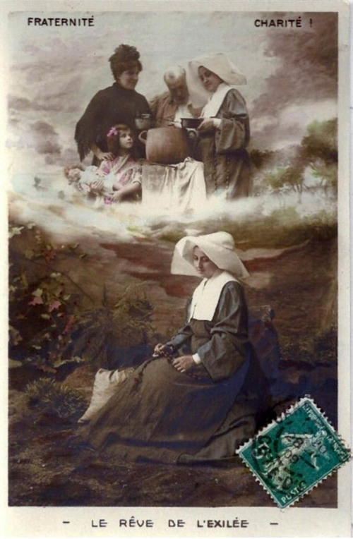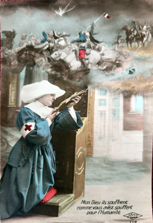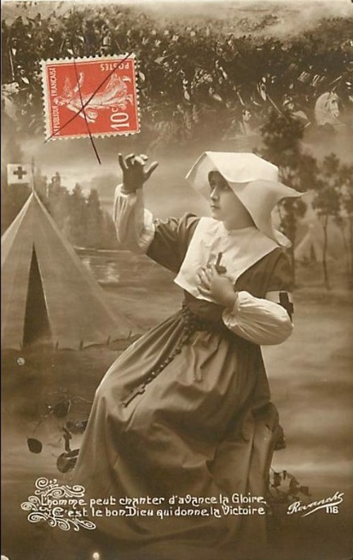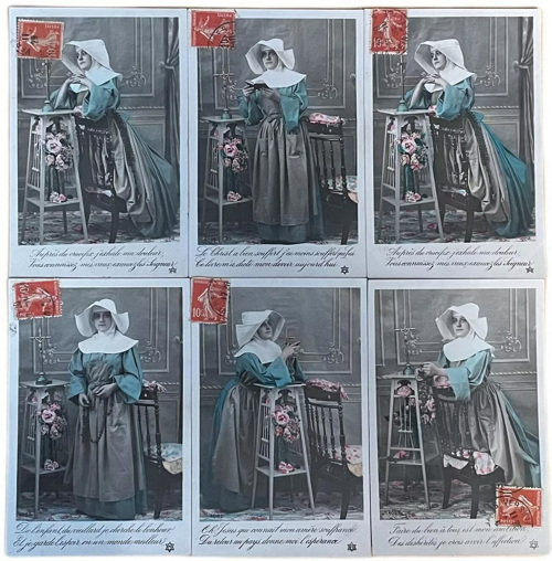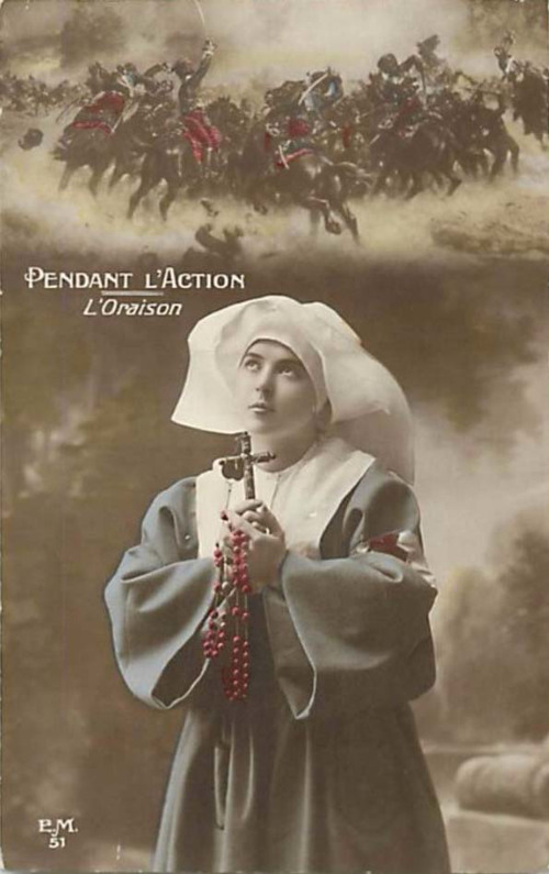 301. After the attack, a cordial 302. War 303. (See 301) 304. War 305. War. 306. War 307. War 308. Our brave ones 309, For the fatherland 310, Praying for France 311, War. 312, War 313 (see 312) 314. War. Sister at prayer 315. War 316. A restorative cordial after the battle 317. Drink 318. Prayer 319, prayer for victory 320, New Year's greetings 321, war 322, winning the war 323. (See 250) 324, a letter home. 325, a prayer 326. Hear my prayer 327, Victory 328. During the battle, prayer. 328. During the sea battle 330, Teach a child to pray 331. Learning how to pray 332. Great cross series 333. Great cross series 334. Great cross series 335. Great cross series 336. Great cross series. 337. Good for evil, at expulsion 338. Separation 339. Separation 340. Prayer 341. Prayer in time of battle 342. Sister at prayer 343. Separation 344. Welcoming a sister 345, separation 346, Separation 347, war 348. War. 349, war 350, War (see 349) 351, War 352, Grey sister 353, Grey sister sent to Germany 354. Hymn to France, see 353, 207 355, Hymn to France, (see 353) 356, Hymn to France (see 207) 357, Russian text 358, prayer, choking the enemy 359, Praying for peace 360, Return to the field 361. Praying for peace (see 360) 362. The angels of the battles 363. The two brave ones. 364. Two brave ones 365. Honor to the 135th regiment 366. Charity, with a heart 367, Sister distributing food 368. An angel on the battlefield 369. Little cornette 370, dreaming of victory 371 372, Wounded sister 373, Devotion 374, law and faith 375, mailed from Italy 376, Prayer 377 378, Sound of guns 379, before and after 380, Croissant series 381, Glory, patriorism, piety 382. Battlefield care 383. Battlefield care 384. Battlefield care 385, Field hospital 386. Devotion 387. Separation 388. Praying with Sister 389. Two children 390. Reading to children 391. Two children 392 393. German, fundraising 394. Separation 395. De Profundis 396, Dream in exile, equality, hope 397, Dream in exile, equality,charity 398, the exile 399, Dream in exile, liberty, faith 400. Red Cross (see 180) 401. Filial devotion 402. Cornilliet photo 403, sudden 404, colored. See 007 405. 406. exile 407, Protect 408, Faith, Hope, Charity 409, comic conversation 410, prayer for an injured soldier 411, prayer. See 319 412, Sister reads to a wounded soldier, 1915 413. Wistful Sister with prayerbook 414, Holy Mother of God 415, Holy Mary, hear our prayer 416, Sister in field hospital, 1915 417. Separation 418, hope 419, prayer 420. answered prayer 421. Sublime devotion 422. Sublime devotion 423. Sublime devotion 424. Sublime devotion 425 426 427 428, See 370, different text 429 430. Orphans 431 432, Revanche series 433, Revanche series 434. Holy Girls 435. Kissing a girl 436. Write home 437 438, For God and France 439, Exiled 440, Glory, devotion and pity 441, Victory 442, Care on the battlefield 443, Abnegation 444, Sister and soldier 445, Care for a bedridden soldier 446, Christ of Compiegne, 01, praying 447, Christ of Compiegne, 02, begging 448, Christ of Compiegne, 03, The Nursery 449, Christ of Compiegne, 04, Elementary school 450, Christ of Compiegne, 05, the Workhouse 451, Christ of Compiegne, 06, Sickbed 452, Christ of Compiegne, 07, Battlefield 453, Christ of Compiegne, 08, Heroism of a Sister 454, Christ of Compiegne, 09, Exile is her reward 455, Christ of Compiegne, 10, In the name of liberty 456 457. Prayer for sleep, peace 458, Charity 459, Heaven, my reward 460. Prayer (see 407, 408) 461, God bless soldiers 462 463, Daughters at prayer, six images 464 465 466 467, After the attack, the Letter (see 236, 301) 468, Exile, border marker, Belgium 469, Expulsion, two Sisters 470, 1904, 1905 471, At the sickbed 472, Good Sisters 473 474 475, with rifle 476 477. Sister at the battlefield 478. Sister and a nurse 479, In the workshop 480, Bread for the children 481, Sweet prayers 482 483 484 485, three children, home visit 486, Breathe my friend 487 488 489, Glory, devotion and mercy 490, Visit to the hero 491, birthday card 492 493, rhyming couplet 494, For the fatherland 495, battle 1907 496, For the fatherland 497, For the fatherland 498, defeating the German enemy 499, Well protected France 500, For the fatherland