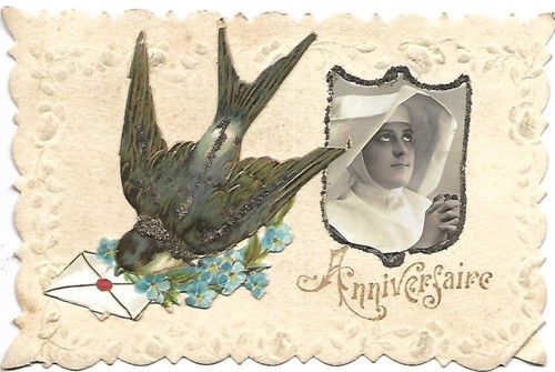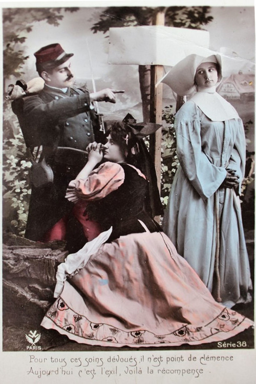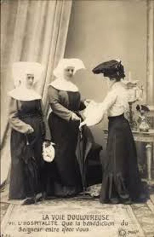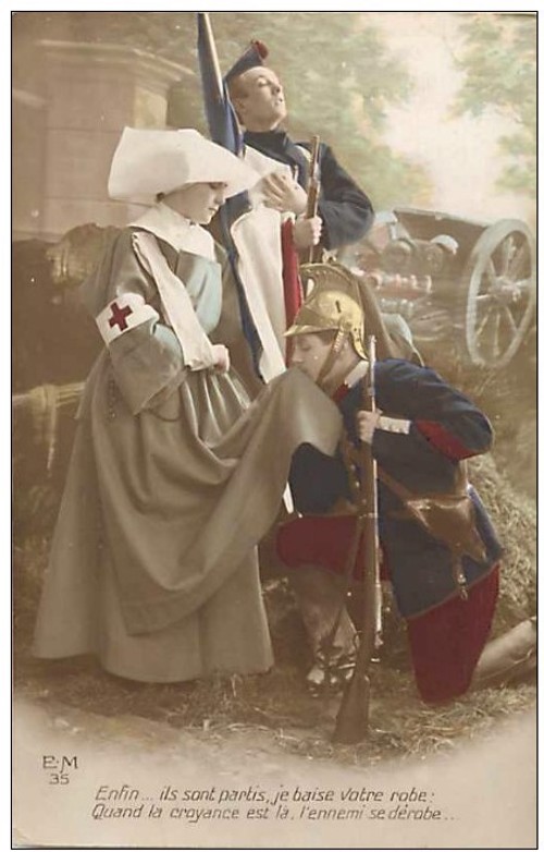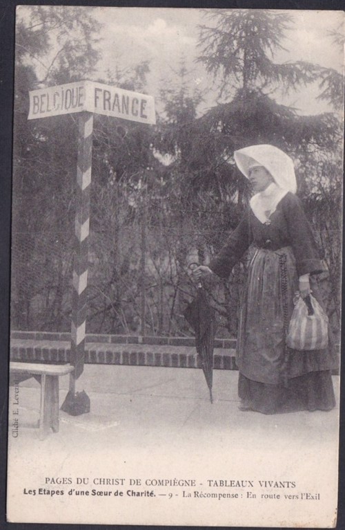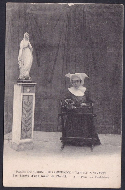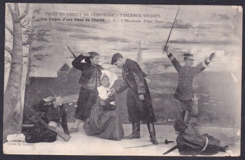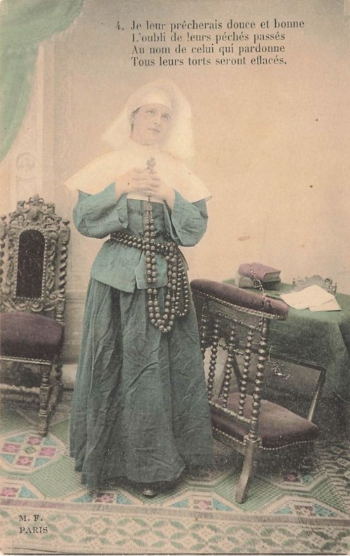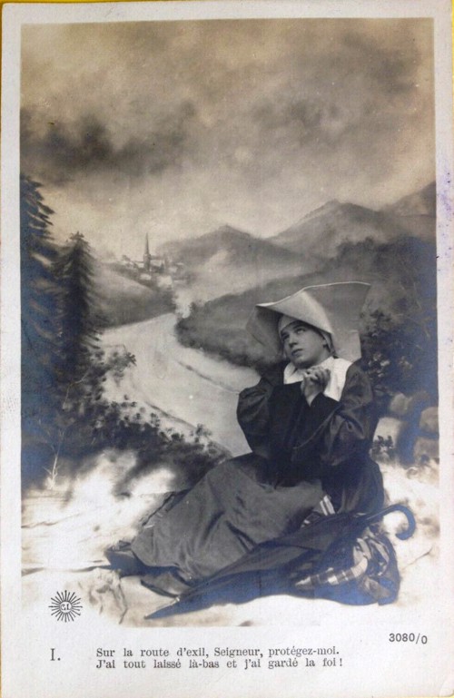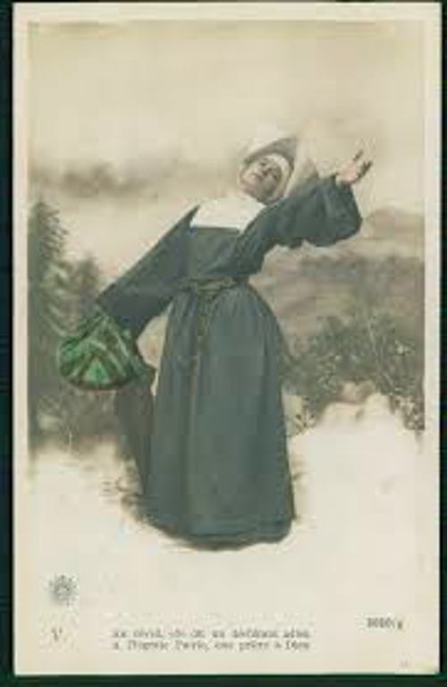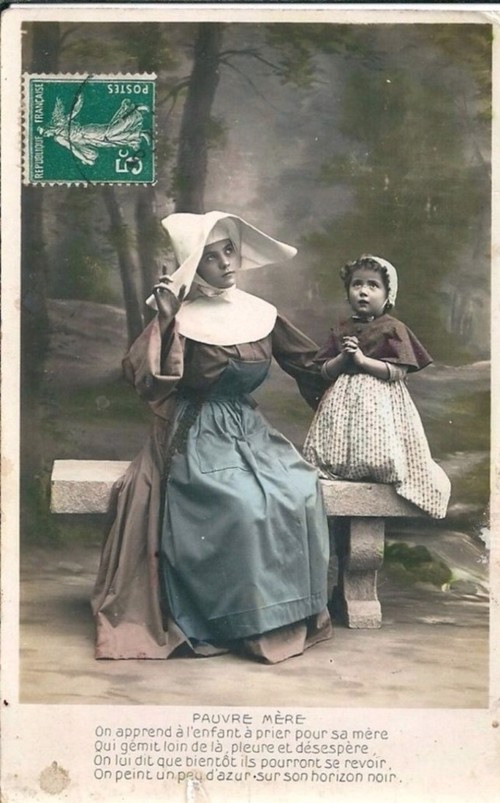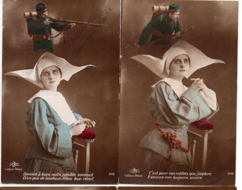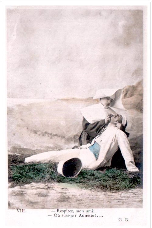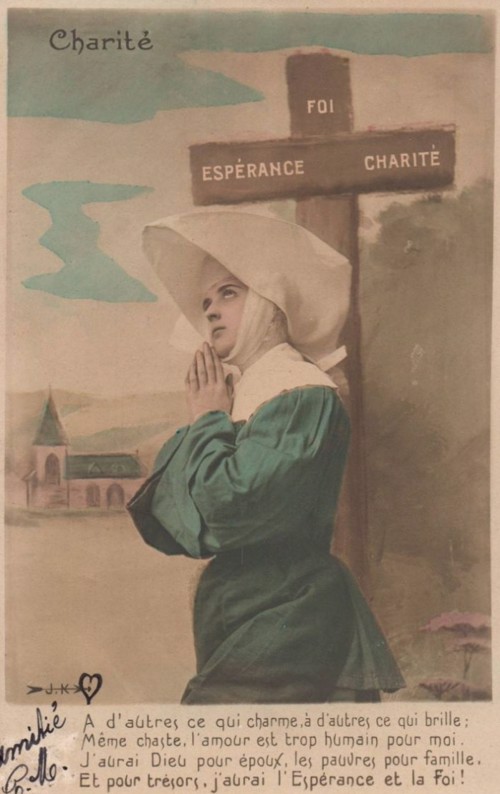 301. After the attack, a cordial 302. War 303. (See 301) 304. War 305. War. 306. War 307. War 308. Our brave ones 309, For the fatherland 310, Praying for France 311, War. 312, War 313 (see 312) 314. War. Sister at prayer 315. War 316. A restorative cordial after the battle 317. Drink 318. Prayer 319, prayer for victory 320, New Year's greetings 321, war 322, winning the war 323. (See 250) 324, a letter home. 325, a prayer 326. Hear my prayer 327, Victory 328. During the battle, prayer. 328. During the sea battle 330, Teach a child to pray 331. Learning how to pray 332. Great cross series 333. Great cross series 334. Great cross series 335. Great cross series 336. Great cross series. 337. Good for evil, at expulsion 338. Separation 339. Separation 340. Prayer 341. Prayer in time of battle 342. Sister at prayer 343. Separation 344. Welcoming a sister 345, separation 346, Separation 347, war 348. War. 349, war 350, War (see 349) 351, War 352, Grey sister 353, Grey sister sent to Germany 354. Hymn to France, see 353, 207 355, Hymn to France, (see 353) 356, Hymn to France (see 207) 357, Russian text 358, prayer, choking the enemy 359, Praying for peace 360, Return to the field 361. Praying for peace (see 360) 362. The angels of the battles 363. The two brave ones. 364. Two brave ones 365. Honor to the 135th regiment 366. Charity, with a heart 367, Sister distributing food 368. An angel on the battlefield 369. Little cornette 370, dreaming of victory 371 372, Wounded sister 373, Devotion 374, law and faith 375, mailed from Italy 376, Prayer 377 378, Sound of guns 379, before and after 380, Croissant series 381, Glory, patriorism, piety 382. Battlefield care 383. Battlefield care 384. Battlefield care 385, Field hospital 386. Devotion 387. Separation 388. Praying with Sister 389. Two children 390. Reading to children 391. Two children 392 393. German, fundraising 394. Separation 395. De Profundis 396, Dream in exile, equality, hope 397, Dream in exile, equality,charity 398, the exile 399, Dream in exile, liberty, faith 400. Red Cross (see 180) 401. Filial devotion 402. Cornilliet photo 403, sudden 404, colored. See 007 405. 406. exile 407, Protect 408, Faith, Hope, Charity 409, comic conversation 410, prayer for an injured soldier 411, prayer. See 319 412, Sister reads to a wounded soldier, 1915 413. Wistful Sister with prayerbook 414, Holy Mother of God 415, Holy Mary, hear our prayer 416, Sister in field hospital, 1915 417. Separation 418, hope 419, prayer 420. answered prayer 421. Sublime devotion 422. Sublime devotion 423. Sublime devotion 424. Sublime devotion 425 426 427 428, See 370, different text 429 430. Orphans 431 432, Revanche series 433, Revanche series 434. Holy Girls 435. Kissing a girl 436. Write home 437 438, For God and France 439, Exiled 440, Glory, devotion and pity 441, Victory 442, Care on the battlefield 443, Abnegation 444, Sister and soldier 445, Care for a bedridden soldier 446, Christ of Compiegne, 01, praying 447, Christ of Compiegne, 02, begging 448, Christ of Compiegne, 03, The Nursery 449, Christ of Compiegne, 04, Elementary school 450, Christ of Compiegne, 05, the Workhouse 451, Christ of Compiegne, 06, Sickbed 452, Christ of Compiegne, 07, Battlefield 453, Christ of Compiegne, 08, Heroism of a Sister 454, Christ of Compiegne, 09, Exile is her reward 455, Christ of Compiegne, 10, In the name of liberty 456 457. Prayer for sleep, peace 458, Charity 459, Heaven, my reward 460. Prayer (see 407, 408) 461, God bless soldiers 462 463, Daughters at prayer, six images 464 465 466 467, After the attack, the Letter (see 236, 301) 468, Exile, border marker, Belgium 469, Expulsion, two Sisters 470, 1904, 1905 471, At the sickbed 472, Good Sisters 473 474 475, with rifle 476 477. Sister at the battlefield 478. Sister and a nurse 479, In the workshop 480, Bread for the children 481, Sweet prayers 482 483 484 485, three children, home visit 486, Breathe my friend 487 488 489, Glory, devotion and mercy 490, Visit to the hero 491, birthday card 492 493, rhyming couplet 494, For the fatherland 495, battle 1907 496, For the fatherland 497, For the fatherland 498, defeating the German enemy 499, Well protected France 500, For the fatherland