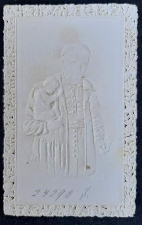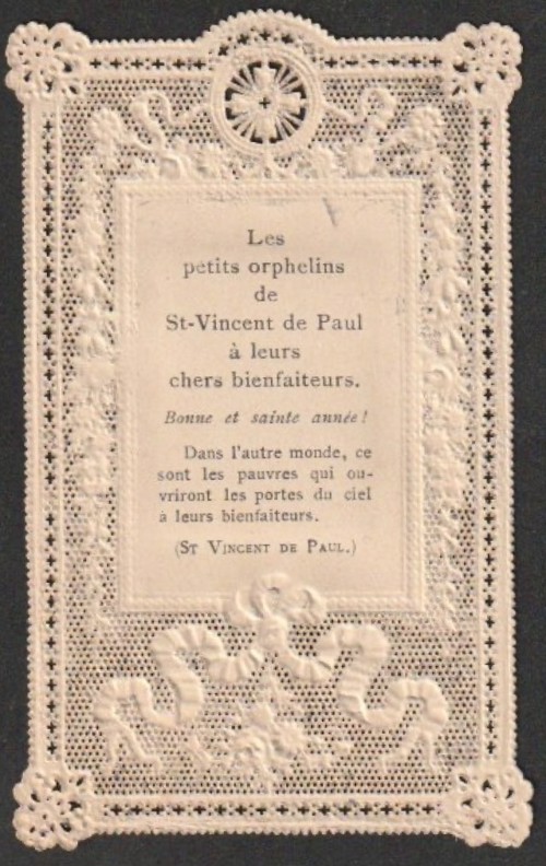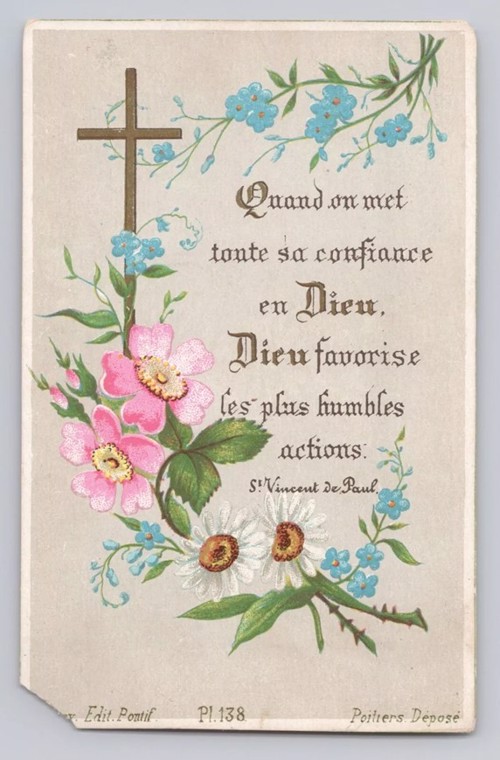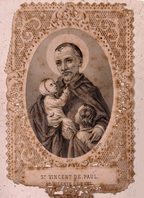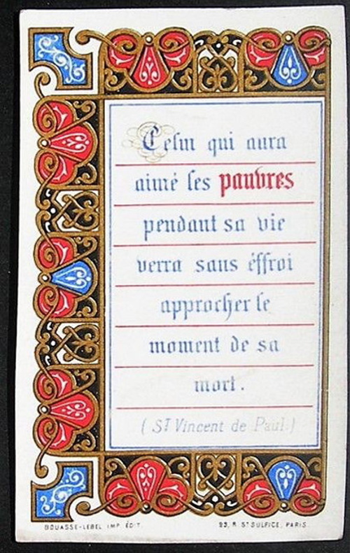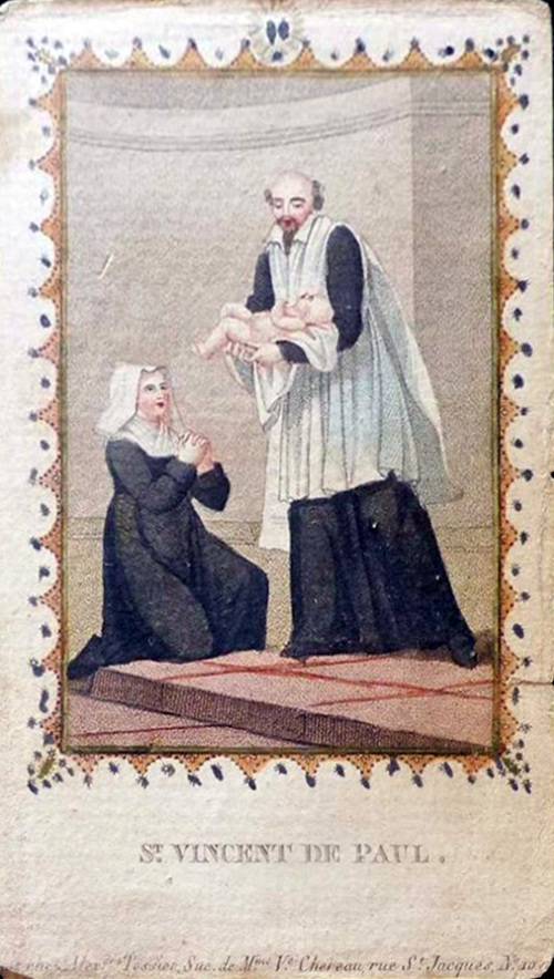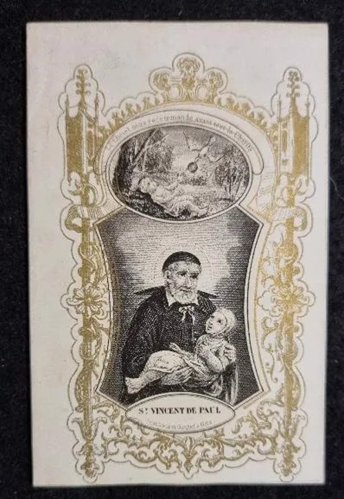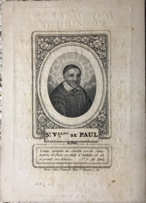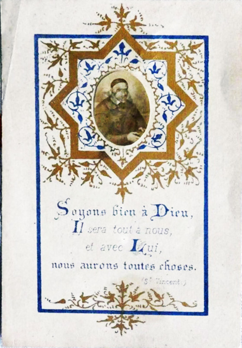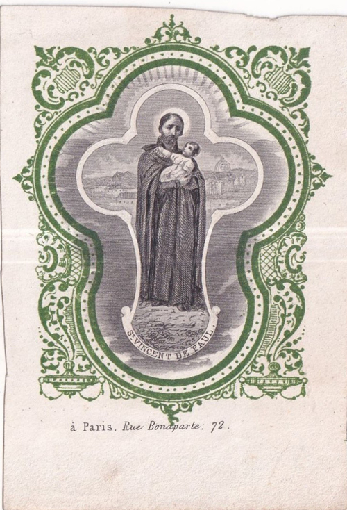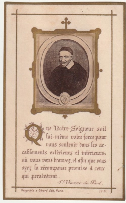 501 502, 19th century 503, Paradise 504, canivet 505, canivet 506 507, Orphans, canivet 508, Taking the chains of a convict 509, 19th century 510, authentic portrait 511, French 512 513 514 515 516, canivet; foundlings, Sisters 517, preaching to galley prisoners; see , paintings, Trinité 518, three lanuages, French, Spanish, German 519, prayer to God 520, wishes for God's blessings 521, Paradise 522, wood block style 523, SVdP text, see 436 524, SVdP text 525 (see 436, same text) 526, quotation 527, quotation 528, quotation (See 436) 529, quotation 530, quotation (See 1303) 531, quotation 532, canivet, hand colored 533, for text see 482 534, Imitator 535, True charity 536, will of God 537, early 19th century 538, pilgrimage to Clichy-la-Garenne 539, perhaps Dutch 540, veneration of crocifix 541, composite 542 543 544, Italian text 545, "exactly from the oldest engraving made in the year of his death." 546 547, canivet 548, French 549, Prayer to SVdP 550, canivet 551, canivet 552, France, caring for abandoned child 553, True Image, no skullcap 554, with commercial overprint 555, French 556 557 558, handcolored 559, holy card or poster from diocese of Bordeaux 560, 18th c 561, canivet 562, embossed 563, canivet 564 565 566. Will of God 567. Founding the Foundling Hospital 568, portrait 569, see DePaul Univ., 883, in color 570, canivet, Turgis 571, canivet 572, embossed card 573, belong to God 574, belong to God, Text, see 034. 575 576, Belgium, St. Vincent School, Levele 577 578 579 580 581, With children 582, with door removed, canivet 583 584 585 586, canivet 587, lithograph 588, quotation 589 590, folded card 591, Man of good 592 593, True charity 594 595 596, canivet prayer card 597, canivet 598, canivet 599 600, two levels