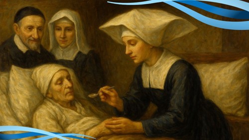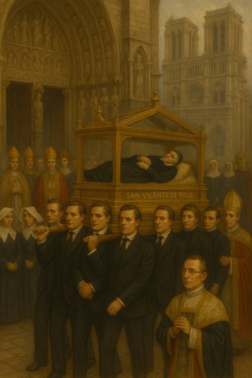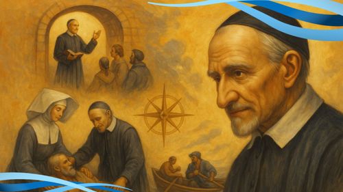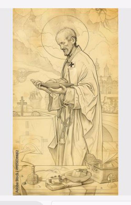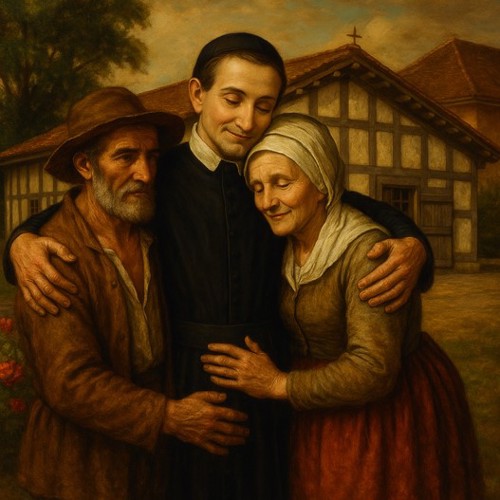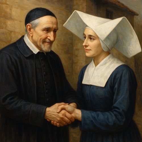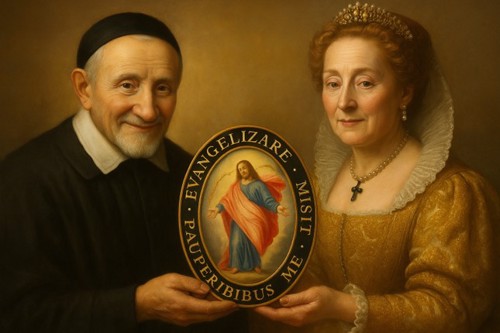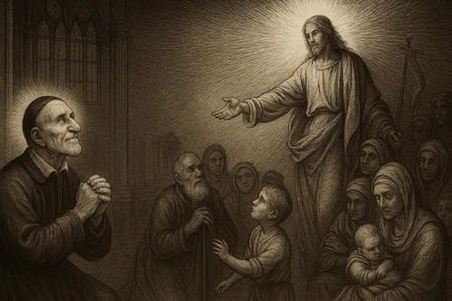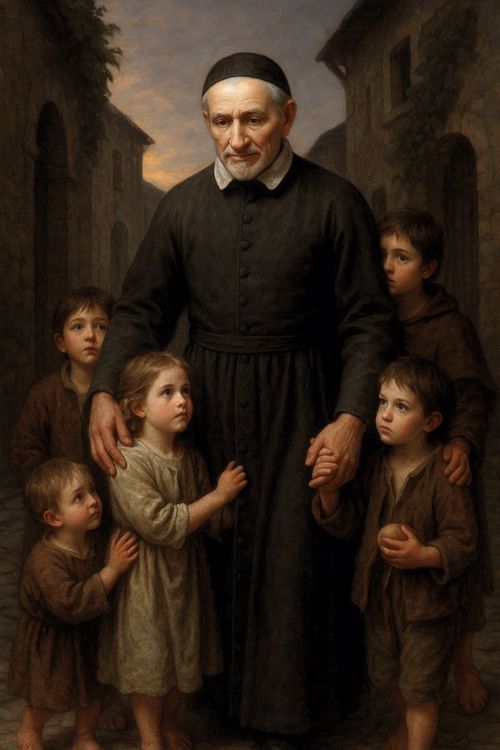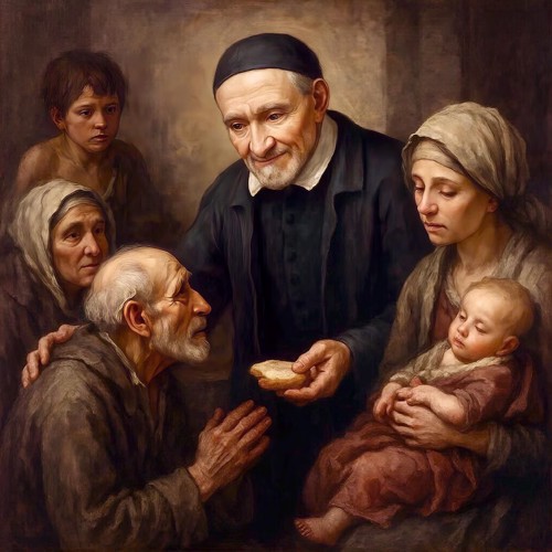 AI 001, SVdP holding a scroll AI 002 AI 003, Heart of de Paul, smiling, singing with five children AI 004, SVdP welcoming Pope Francis into heaven AI 005, SVdP, Pope Francis in heaven; Superior general Mavric in prayer AI 006, 444th birthday cake AI 007, 444th birthday with saintly friends AI 008, SVdP preaching AI 009, SVdP pushes wheelchair of Pope Francis AI 010, SVdP at deathbed, probably of Marguerite Naseau AI 011, SVdP AI 012, SVdP, other saints AI 013 AI 014 AI 015, Francis and SVdP AI 016, Francis and SVdP AI 017, Louise and SVdP AI 018, Louise and SVdP AI 019, seaside AI 020, SVdP playing the guitar AI 021, Saints AI 022, service to the needy AI 023 AI 024, SVdP and the Ten Commandments AI 025 AI 026 AI 027, Vincent at prayer AI 028 AI 029 AI 030, Madame de Gondi AI 031 Madame de Gondi AI 032, SVdP and his family at the Berceau AI 033, Hungary AI 034, SVdP, elevation of the host AI 035 AI 036, with parents AI 037, with parents at Pouy AI 038 AI 039 AI 040 AI 041 AI 042 AI 043, comforting a child AI 044 Translation of the relics AI 045 AI 046, jubilee 2025 AI 047 AI 048 AI 049, with Marguerite Naseau AI 050, With children AI 051, with Sister, infants AI 052, comforting the needy AI 053, VdP with Marguerite Naseau AI 054, caring for the sick