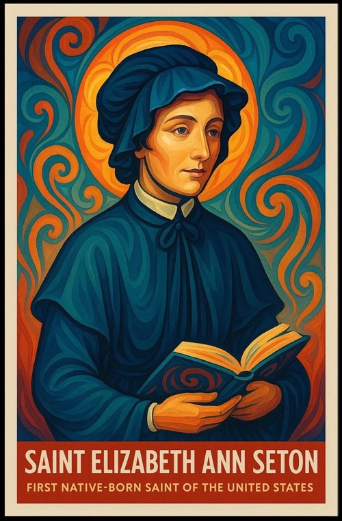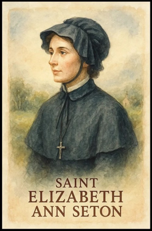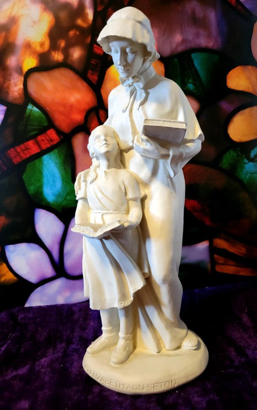 Seton 601, statuette Seton 602, book and rosary Seton 603 Seton 604, with metal halo Seton 605, carved wood Seton 606, wood statue Seton 607 Seton 608 Seton 609, statuette Seton 610, MD, Emmitsburg, Pictorial Needlework