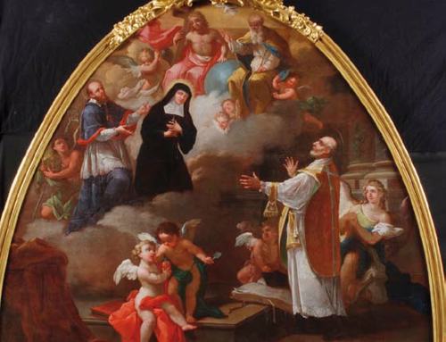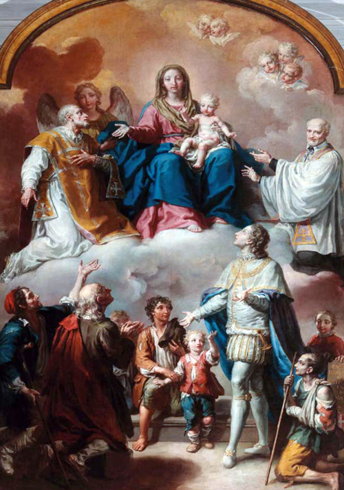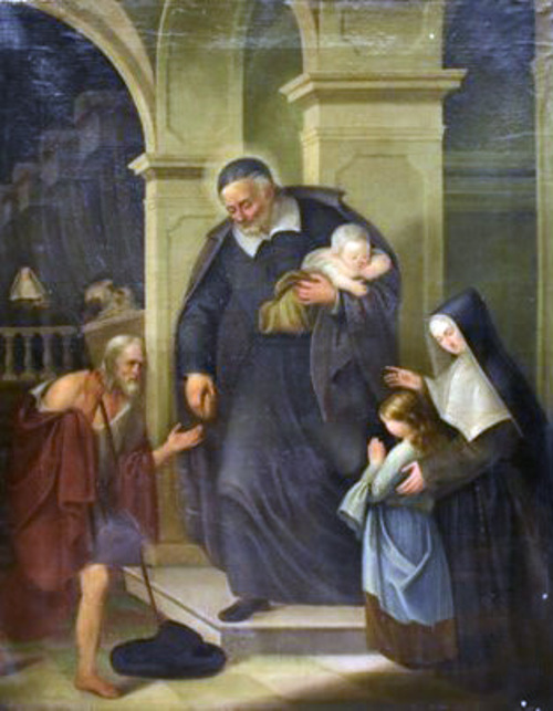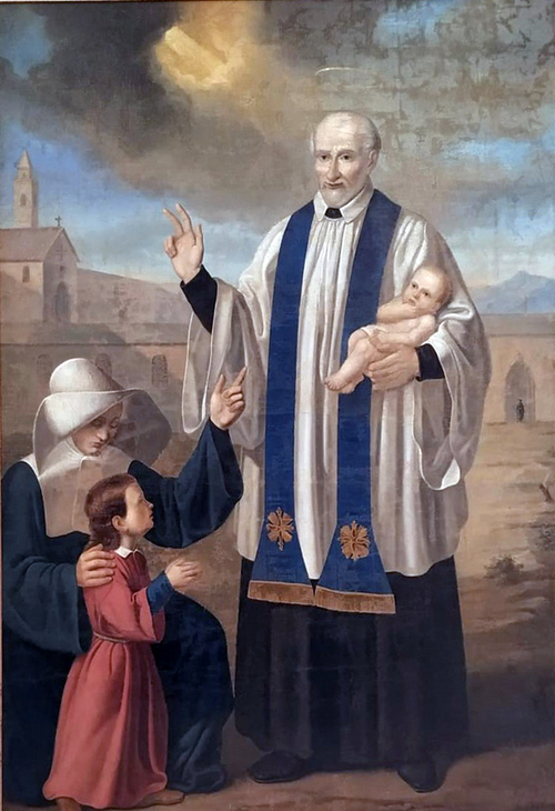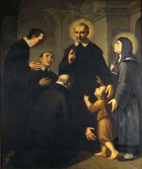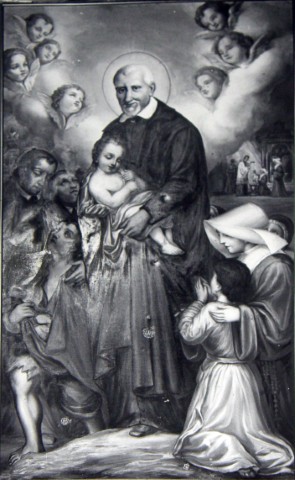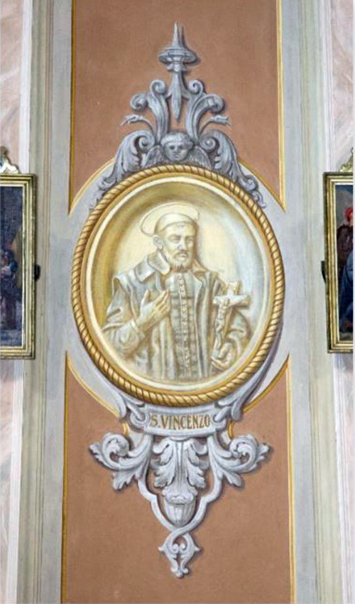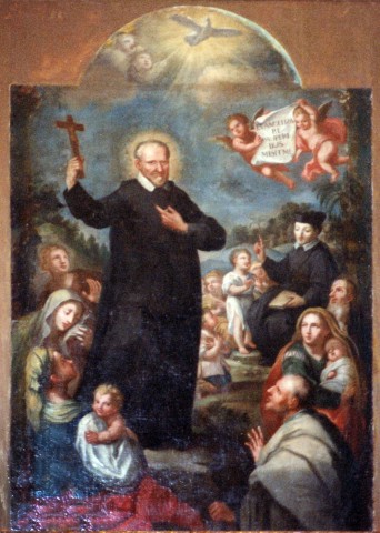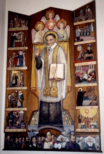 Naples, S Nicola icons, etc Acqui diocese, with San Rocco Adria-Rovigo diocese, with Francesco di Paola Aggento diocese, Francesco de Paola, Madonna della Regola, style of Domenico Provenzani Alba Pompeia diocese, Cortemilia, SVdP carrying an infant Alessandra diocese, Valenza, SVdP, a hermit, Assumption of BVM Altamura diocese, Gustavo Nacciardone Anesa Avellino diocese, SVdP preaching to country people Aversa diocese, artist Raff Iodice Aversa diocese, G. Vollono Bari diocese, wall painting Bari diocese Bari, provincial museum, Francesco de Muta Belluno diocese, SVdP with children, poor man, snow Bergamo diocese, 2 Bergamo diocese, Adrara San Rocco, SVdP instructs about popular missions Bergamo diocese, by Mino Marra 1 Bergamo diocese, by V-A Manini Bergamo diocese, Carona, Vincent de Paul, crucifix, girl Bergamo diocese, Mino Marra Bergamo diocese, oil on canvas, sending on mission Bergamo diocese, with a child Bergamo, SVdP evangelizing the poor by GA Petrini Bitonto, Cristo Re parish, Antonio de Feoli 1856 Bologna diocese, Vincent de Paul, with John Nepomuk, a bishop, and a Jesuit.jpg Bologna, Alessandro Guardassoni ca 1860 Bologna, BVM and saints Bologna, Ch. Blessed Trinity, by Ubaldo Bonvicini Bologna, Ecstasy of SVdP Bologna, SVdP and Ladies of Charity, 1841 Bologna, Trasasso di Monzuno; SVdP with Ph Neri, 1761 Brescia diocese 1 Brescia diocese 2 Brescia diocese 3 Brescia diocese, Carpendolo, SVdP presented by Fr. de Sales to Jeanne de Chantal Brescia diocese, Ghedi, SVdP gives rules of the Mission Brescia diocese, Lovere, former convent; SVdP helps poor Brescia, La Carita, 1891 Caltagirone diocese, 1994 Caltagirone, Francesco Vaccaro Caltagirone, SV, Sisters, and the poor 1 Caltagirone, SV, Sisters, and the poor 2 Caltanisseta diocese, Madrice, Chiesa S. Agostino Capua diocese, by Antonio Crispo, 1987 Capua diocese, tempera Casale Montferrato diocese Caserta, Casagiove Catania, Vincent de Paul and saints Chiavari diocese, Sestri, Sant'Antonio Chiavari diocese, with Aloisius Gonzaga Chiavari diocese, with St. Erasmo Chiavari, S. Filippo church Chieri, SVdP altar, painting by Rapous, details Chieri, SVdP altarpiece Chieri, SVdP with SS Clet and Perboyre Chieri, VdP altar, painting by Rapous Chieri, Vincent de Paul evangelizing Chieri, Vincent de Paul with crucifix Chieti diocese, preaching, stucco Chieti diocese, the poor, stucco Chieti diocese, with sick, stucco Chieti diocese, with the poor, stucco Chieti diocese Chioggia diocese, Vincent with crucifix, child Cinalli Como diocese, Talamona, San Giorgio, new chapel Como, Hospital 1 Como, Hospital 2 Cremona diocese, 1 Cremona diocese, 2 Cremona diocese, Isola Dovarese, SVdP blesses departing missionaries Cremona, SVdP in glory Cremona, SVdP, Srs of Maria Bambina, and poor persons Cuneo diocese, attributed to PA Botta Fabriano-Matelica diocese, with Francis Xavier Ferentino diocese, Sant'Ippolito Fermo diocese, Porto San Giorgio (AP), SVdP in glory; motto of Daughters of Charity Fermo diocese Fermo, Vincent de Paul at Mass Fidenza diocese Florence 3 Florence diocese, Doccia di Pontassieve, ch. Sant'Andrea Florence diocese, Doccia di Pontassieve Florence diocese, VdP with children Florence, Monastero della Calza Florence, Museo Bardini, SVdP with bishop, people at prayer Florence, San Giuseppino, Vincent preaching, with crucifix Florence, San Jacopo sopr'Arno, vault Florence, San Jacopo, Vincent in glory 1 Florence, San Jacopo, Vincent in glory 2 Florence, SVdP giving alms, 1780 Forli diocese, SVdP, with Francis de Sales, Jeanne de Chantal Francis Xavier model Frosinone diocese, attributed to Podagrosi Frosinone diocese, with Virgin Mary Genoa diocese, escape from Tunis Genoa diocese, with a child Genoa diocese, with Teresa of Avila Genoa, CM house, 053 Genoa, CM house, fleeing captivity Genoa, CM house, SV in glory Genoa, CM house, SVdP and Tuesday conference Genoa, CM house, SVdP cares for homeless Genoa, CM house, SVdP distributes alms to the poor Genoa, CM house, SVdP in glory presented to the Trinity Genoa, CM house, SVdP in glory Genoa, CM house, SVdP preaching in country area Genoa, CM house, SVdP preaching Genoa, CM house, SVdP presented as director of the Visitation Genoa, CM house, SVdP presenting his works to Jesus Genoa, CM house, Vincent preaching, 085 Genoa, with Camillus de Lellis, Mary Immac Church Gorizia diocese, by E. Galli Italy 01, SVdP altarpiece Italy 02, SVdP and foundlings Italy 03, SVdP and Jeanne Antida Thouret Italy 04, SVdP at Mass Italy 05, SVdP blessing women Italy 06, SVdP blessing Italy 07, SVdP by Aurelio Galleppini Italy 08, SVdP holding a child Italy 09, SVdP in snow, with children Italy 10, SVdP preaching on charity Italy 11, SVdP preaching, by Giovambattista Tiepolo Italy 12, SVdP with children, snow Italy 13, SVdP with foundling, Murachini IMG_4102-a Italy 14, SVdP with Mary, bishop Italy 15, SVdP with St Augustine, contemplating the Trinity Italy 16, SVdP, Louise de Marillac, priests, Sisters Italy 17, SVdP, bw Italy 18, SVdP, LdM, Tercentenary, 1960 Italy 19, SVdP, Louise de Marillac with the poor Italy 20, SVdP, Louise de Marillac, Sisters Italy 21, SVdP, sleeping infant Italy 22, SVdP, teaching, 053 Italy 23, SVdP, Sisters, foundlings Italy 24, SVdP, Thouret, Mary and Jesus Italy 25, SVdP, with children, poor man Italy 26, VdP at deathbed of Louis XIII Italy 27, Rome, Zoboli Italy 28, Paolo de Matteis Italy 29, by Benker Italy 32, VdP helping children Italy 34 Italy 35 Italy 36 Italy 37, mural Italy 38 Italy 39 Italy 40, VdP giving alms Italy 41 Italy 42 Italy 43 Italy 44 Italy 45 Italy 46 Italy 47 Italy 48 Italy 49 Italy 50, altarpiece Italy 51 Italy 52, altarpiece, with children Italy 53 Italy 54, Sta. Maria Assunta Italy 55, SV, LdM Italy 56, Ecstasy of SVdP, with St. Augustine, Ivrea diocese, Montanaro, SVdP and Sisters of Montanaro La Spezia-Sarzana diocese, Deiva Marina La Spezia-Sarzana diocese La Spezia-Sarzana Lanciano Latina diocese, by Mario Caracuzzo 1949 Lecce diocese, Purgato