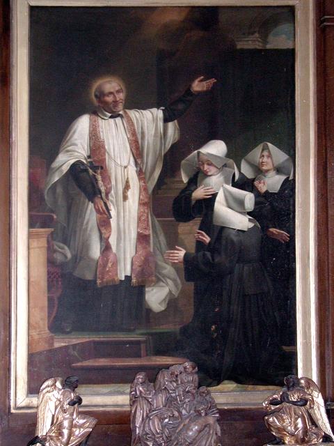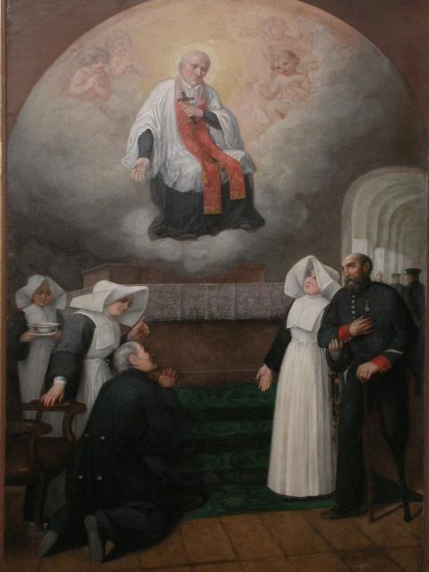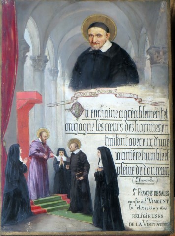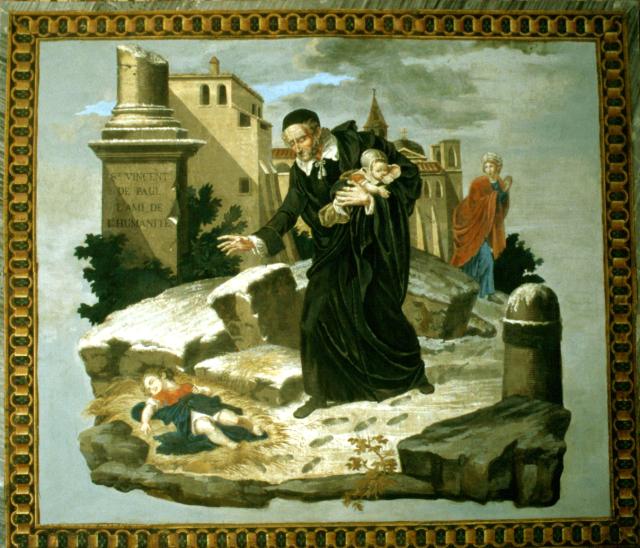 Paris, Assistance Publique, Carpeaux Paris, Assistance Publique, Desvalieres Paris, Assistance Publique, Vincent de Paul and Ladies of Charity Paris, Assistance Publique, Vincent de Paul, detail Paris, Asst. Publ, painting, detail; Pronske-049 Paris, CM provincial house Paris, CM provincial office, Death of Vincent, superiors general Paris, CM provincial office, death of Vincent Paris, CM provincial office, Painted paper Paris, CM provincial office, Vincent de Paul with orphans Paris, Death of Olier Paris, Desvallières (Lavedan), 00, Title Paris, Desvallières (Lavedan), 01, Frontispiece, Mass Paris, Desvallières (Lavedan), 02 captivity Paris, Desvallières (Lavedan), 03, jpg Paris, Desvallières (Lavedan), 04, galley guard Paris, Desvallières (Lavedan), 05, foundlings Paris, Desvallières (Lavedan), 06,Descent from the Cross Paris, Desvallières (Lavedan), 07, carrying cross Paris, Desvallières (Lavedan), 08, climbing a mountain, Calvary Paris, Desvallières (Lavedan), 09, kissing relics Paris, Desvallières (Lavedan), 10, neglecting the handicapped poor Paris, Desvallières (Lavedan), 11, Titles-l1600-poor under bridges Paris, Desvallières (Lavedan), 12, Visiting sick at home Paris, Desvallières (Lavedan), 13, Mass Paris, Desvallières (Lavedan), 14, battle Paris, Desvallières (Lavedan), 15, reading a book Paris, Desvallières (Lavedan), 16, care for the dead Paris, Desvallières (Lavedan), 17, foot of the cross Paris, Desvallières (Lavedan), 18, death of SVdP Paris, Fondation Eugène Napoléon, apse mural Paris, Fondation Eugene Napoleon, model for apse painting Paris, International HQ, Soc. SVdP Paris, La Salpetriere, restored painting Paris, Maison Mere, Church triumphant with Vincent de Paul, signature, 1843 Paris, Maison Mere, Church triumphant with Vincent de Paul Paris, Maison Mere, Church triumphant, 2 Paris, Maison Mere, Church triumphant, 3 Paris, Maison Mere, Death of Vincent de Paul, signature, 1867 Paris, Maison Mere, Death of Vincent de Paul, 2 Paris, Maison Mere, Death of Vincent de Paul, detail Paris, Maison Mere, Death of Vincent de Paul Paris, Maison Mere, Francis de Sales gives rules for Sisters Paris, Maison Mere, panel 01 Paris, Maison Mere, panel 02 Paris, Maison Mere, panel 03 Paris, Maison Mere, panel 04 Paris, Maison Mere, panel 05 Paris, Maison Mere, Rembrandt style Paris, Maison Mere, Vincent de Paul and vision of three Globes Paris, Maison Mere, Vincent de Paul at Council of Conscience Paris, Maison Mere, Vincent de Paul blesses Invalides signature Paris, Maison Mere, Vincent de Paul blesses Invalides Paris, Maison Mere, Vincent de Paul blessing his works from heaven Paris, Maison Mere, Vincent de Paul consoles king Paris, Maison Mere, Vincent de Paul consoles Louis XIII Paris, Maison Mere, Vincent de Paul gives alms as a boy[1]-a Paris, Maison Mere, Vincent de Paul gives rules to Daughters of Charity Paris, Maison Mere, Vincent de Paul in captivity Paris, Maison Mere, Vincent de Paul in glory 1 Paris, Maison Mere, Vincent de Paul in glory, 2 Paris, Maison Mere, Vincent de Paul preaching, Name of Jesus Paris, Maison Mere, Vincent de Paul presents works to Mary Paris, Maison Mere, Vincent de Paul, children and Sister Paris, Maison Mere, Vincent in glory, chapel Paris, Maison Mere, Vincent in glory, detail 1 Paris, Maison Mere, Vincent in glory, full Paris, Maison Mere, Vincent in glory, left Paris, Maison Mere, Vincent in glory, right Paris, Maison Mere, Vincent in glory, signature, 1855 Paris, Maison Mere,, photo of an unknown painting Paris, Musée d'Orsay, Gerome Paris, Musée d'Orsay, La Charité Paris, Notre-Dame du Travail, SVdP, children, guards 2 Paris, Notre-Dame du Travail, SVdP, children, guards Paris, rue Basfroi, Vincent de Paul and children Paris, rue Basfroi, Vincent with children, detail Paris, rue du Bac, 1 panel, Vincent de Paul Paris, rue du Bac, 2 panel, Francis de Sales panel Paris, rue du Bac, blessing Sister Paris, rue du Bac, blessing three Sisters Paris, rue du Bac, orphans Paris, rue du Bac, rules Paris, rue du Bac, Vincent de Paul escorted to heaven Paris, rue du Bac, Vincent de Paul gives rules Paris, Sacre Coeur, Vincent de Paul with saints Paris, Sainte Genevieve Paris, St. Bernard de la Chapelle Paris, St. Eustache, Vincent de Paul preaching Paris, St. Lazare, Apotheosis of SV Paris, St. Lazare, tomb painting, vignette 1 Paris, St. Lazare, tomb painting, vignette 2 Paris, St. Lazare, tomb painting, vignette 3 Paris, St. Lazare, tomb painting, vignette 4 Paris, St. Louis en l'Ile, Vincent blessing Paris, St. Merri, Vincent de Paul in Tunis Paris, St. Merri, Vincent de Paul mural Paris, St. Merri, Vincent slave, 2 Paris, St. Merri, Vincent slave, draft drawing Paris, St. Merri, Vincent slave Paris, St. Nicolas des Champs, Vincent a poor man, study Paris, St. Nicolas des Champs, Vincent and carriage Paris, St. Nicolas des Champs, Vincent de Paul and poor man, signature Paris, St. Nicolas des Champs, Vincent de Paul and poor man Paris, St. Nicolas des Champs, Vincent de Paul takes chains of a prisoner Paris, St. Nicolas des Champs, Vincent de Paul, engraving Paris, St. Roch, Vincent de Paul and poor Paris, St. Roch Paris, St. Sulpice, Death of Louis XIII, 1824 sketch Paris, St. Sulpice, Death of Louis XIII Paris, St. Sulpice, Tuesday conference, restored Paris, St. Sulpice, Tuesday Conference Paris, St. Sulpice, VdP presenting foundlings to Ladies, Sisters Paris, St. Sulpice, Vincent de Paul, Ladies of Charity Paris, St. Sulpice, Vincent rejects bribe Paris, St. Sulpice, Vincent taken to heaven Paris, St. Thomas Aquinas, Vincent de Paul and foundlings Paris, St. Thomas Aquinas, Vincent de Paul finding children Paris, St. Thomas d'Aquin, squinch Paris, Ste-Marie-des-Batignolles Paris, Ste. Marguerite VdP in glory Paris, Ste. Marguerite, Ladies of Charity, detail Paris, Ste. Marguerite, Vincent and rules for Sisters of Providence, colorized.jpg Paris, Ste. Marguerite, Vincent and rules for Sisters of Providence Paris, Ste. Mar