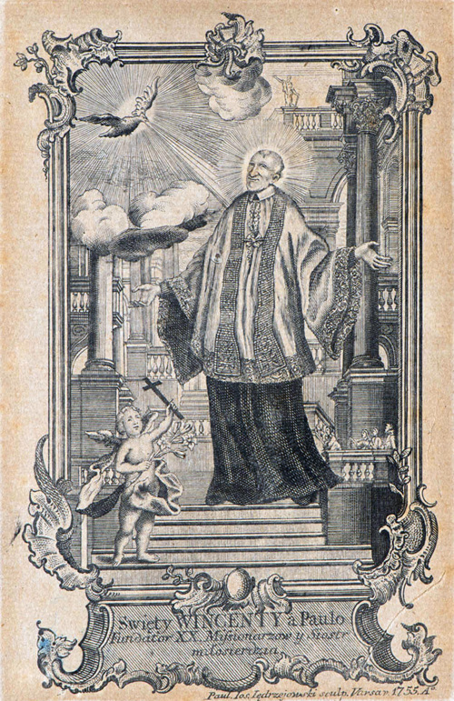 Poland 01, Chelmno and Sisters, ca. 1875, color Poland 02, Chelmno and Sisters, ca. 1875 Poland 03, from canonization painting Poland 04, Gunth 174 Poland 05, Gunth 174a Poland 06, Krakow engraving, detail 1 Poland 07, Krakow engraving, detail 2 Poland 08, Krakow engraving, Vincent preaching Poland 09, magazine cover 1 Poland 10, magazine cover 3, color Poland 11, magazine cover 5, NP, 1981 Poland 12, magazine cover 2 Poland 13, magazine cover 3 Poland 14, magazine cover 4, Meteor 1989 Poland 15, Vincent de Paul and Louise de Marillac Poland 16, Vincent de Paul blessing the sick Poland 17, Vincent de Paul contemplating crucifix Poland 18, Vincent de Paul, 1860 Poland 19, Vincent on galley Poland 20, Vincent and Paul Poland 21, Vincent de Paul, orphan Poland 22, 1755 Poland 23 Poland 24, album Poland 25, album Poland 26, 1837 Poland 27, 1737 Poland 28 Poland 29 Poland 30, Saint VdP Poland 31, VdP Apostle of Charity Poland 32 Poland 33, canonization, 1737 Poland 34 Poland 35 Poland 36, Wrocław Conference Association Poland 37, Pabianice City Poland 38, Vincent de Paul drawing Poland 39, see 08 Poland 40, prayers, Monday through Friday Poland 41, Vincent and Louise Poland 42, Patron of Works of Mercy