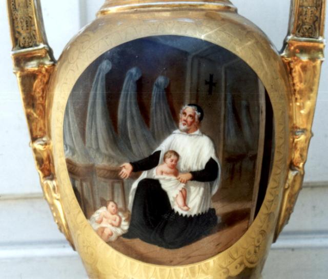 Argentina, ceramic plaque, 400th anniversary, 1581-1981 Brazil, mug Brazil, painted ceramic, various poses Brazil, painted ceramic, with cross Brazil, painted ceramic, with halo Brazil, painted ceramic France, Marseilles, teapot, white France, Paris, Porcelain vase 01, Sèvres 1, rear France, Paris, Porcelain vase 02, Sèvres 2, detail France, Paris, Porcelain vase 03, Sèvres 2, Vincent de Paul France, Paris, Porcelain vase 04, Sèvres, 1, front France, Paris, Porcelain vase 05, Sèvres, 2, rear France, Paris, Porcelain vase 06, Sèvres, 2 France, Paris, Porcelain vase 07, Sèvres, detail France, Paris, porcelain vase 08 France, Paris, porcelain vase 09, small JPG France, Paris, porcelain vase 10 France, Paris, porcelain vase 11 France, Paris, porcelain vase 12 France, Paris, porcelain vase 13, Daughter of Charity, at death of racine France, Paris, porcelain vase 14 France, Paris, porcelain vase 16 France, Paris, Tea pot 01, Vincent de Paul, behind France, Paris, Tea pot 02, Vincent de Paul, white cassock France, Paris, Tea pot 03, Vincent de Paul, black cassock France, Paris, tea pot 04, Vincent de Paul, front France, Paris, tea pot 05, Vincent de Paul, pieces France, Paris, Tea pot 07 France, Paris, Tea pot, 08, reverse France, Paris, teapot 06, with DC France, Plaster proof for commemorative medallion, ca. 1860 France, Plaster proof, ca. 1950 France, plate 01 France, plate 02 France, plate 03, nursing Sister France, plate 04, home visit France, plate 05, glass France, Plate 06, Paris, stamp, 1844 France, plate 07, Vincent de Paul and foundlings France, plate 08, Vincent de Paul with children France, plate 09 Vincent de Paul France, plate 10 France, plate 11, protector of abandoned children France, plate 12, gathering foundlings France, porcelain medallion, by Jean-Etienne Mascret (1790-1848), bronze frame France, St. Cloud, St. Joseph Artisan France, SVdP with a child, in snow France, Tea pot, Vincent de Paul, violet France, Vincent de Paul pendant, obv France, Vincent de Paul pendant, rev France, Vincent de Paul shrine France, Vincent de Paul, imported France, Vincent de Paul, painted plaque France, Vincent de Paul, plaque 1 France, Vincent de Paul, plaque 2.jpg Germany, ceramic, Vincent de Paul holding child Germany, Herstelle Abbey, 1 Germany, Herstelle Abbey, 2 Germany, Porcelain plaque, Vincent de Paul alone Germany, Porcelain plaque, Vincentians in Trier Germany, porcelain plaque Italy, box, wax figure, mahogany, cloth Italy, Piacenza Italy, Rome, Charity for the poor Italy, Siena, plate Kenya, Nairobi tabernacle Netherlands, Ceramic plaque Spain, DC anniversary, Valencia Spain, Gran Canarias, resin statuette Spain, Salamanca plaque USA, Ceramic 01 Vincent de Paul and children USA, ceramic 02, VdP with two children USA, Chicago, ceramic oval 1 USA, Chicago, ceramic oval 2 USA, Chicago, ceramic oval 3 USA, Chicago, DePaul, vase 1 USA, Chicago, DePaul, vase 2 USA, Chicago, Plate 1 USA, Chicago, Plate 2 USA, Chicago, Plate 3 USA, Chicago, Plate 4 USA, Chicago, Plate 5 USA, Chicago, Plate 6 USA, Christmas tree ornament USA, MD, Emmitsburg, Vincent de Paul vase USA, PA, Germantown, shine museum USA, painted pottery USA, peg doll USA, porcelain pendant USA, porcelain plaque USA, porcelain statuette USA, Vincent Image, Torrini plaque Vincent de Paul, beaded, embroidered oval Vincent de Paul, ceramic oval 3 Vincent de Paul, ceramic oval 4 Vincent de Paul, holy water font Vincent de Paul, mug 01 Vincent de Paul, mug 02 Vincent de Paul, mug 03 Vincent de Paul, mug 04 Vincent de Paul, mug 05 Vincent de Paul, mug 06 Vincent de Paul, mug 07 Vincent de Paul, mug 07 Vincent de Paul, mug 08 Vincent de Paul, mug 09 Vincent de Paul, pewter 1 Vincent de Paul, pewter 2, German Vincent de Paul, plate Vincent de Paul, porcelain on blue glass