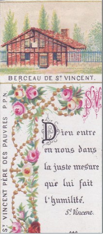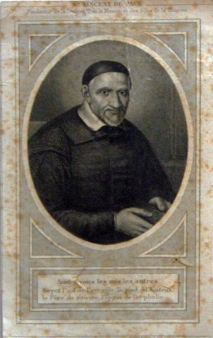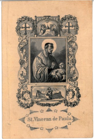 001, France 001, Mr Vincent, before 1727 002, France 001a, Mr. Vincent, by Bazin 003, France 002, Blessed Vincent de Paul, oval frame 003, France 002a, Blessed Vincent de Paul 005, France 003, Old, 01, Vincent de Paul as a monk 006, France 004, Old, 02; Vincent de Paul with prisoner 007, France 005. Old, 03; Vincent de Paul with infant 008, France 006, Old, 04; Vincent de Paul in prayer, flowers 009, France 007, Old, 05; Vincent de Paul and child, from Metz 010, France 008, Old, 06; Vincent de Paul and foundlings 011, France 009, Old, 07; Vincent de Paul and Holy Spirit 012, France 010, Old, 08, Vincent de Paul with foundling 013, France 011, Old, 09, Vincent de Paul with book 014, France 012, Old, 10; Vincent de Paul with two children 015, France 013, Old, 11; Vincent de Paul and foundlings 016, France 014, Old, 12; Vincent de Paul, child, begging bag 017, France 015, Old, 13; Vincent de Paul with begging bag 018, France 016, Old, 14; Vincent de Paul and child 019, France 017, Old, 15; Vincent de Paul and child 020, France 018, Old, 16; Vincent de Paul and child 021, France 019, Old, 17, Vincent de Paul and heart of charity 022, France 020, Old, 18, Vincent de Paul in oval frame 023, France 021, Old, 19; Vincent de Paul and infant 024, France 022, Old, 20; Vincent de Paul and foundlings 025, France 023, Old, 21; Vincent de Paul in heart 026, France 024, Old, 22; Vincent de Paul with infant 027, France 025, old 23 028, France 026, old 24 029, France 027, old 25 030, France 028, old 26 031, France 029, Vincent de Paul, apostle of charity 032, France 030, Vincent de Paul, child 033, France 031, Vincent de Paul, children, bread 034, France 032, Vincent de Paul, Daughter of Charity, children 035, France 033, Vincent de Paul, detail of vow day card 036, France 034, Vincent de Paul, First Mass 037, France 035, Vincent de Paul, for Cayla, 1790 038, France 036, Vincent de Paul, embossed 039, France 037, Vincent de Paul, orphans and Daughters of Charity 040, France 038, Vincent de Paul, patron of Children of Mary 041, France 039, Vincent de Paul, portrait with book 042, France 040, Vincent de Paul, Tercentenary 1960 043, France 041, Vincent de Paul, with book and crucifix 044, France 042, Vincent de Paul, with pious texts, detail 045, France 043, Vincent de Paul, with pious texts 046, France 044, Vincent de Paul, children, by Andre-Marie 047, France 045, Apotres, 1 048, France 046, Apostles, 2 049, France 047, Apotres, 3 SV+Olier 050, France 048, Apotres, 4, SV+Richelieu 051, France 049, Apotres, 5 SV+Fr. de Sales 052, France 050, Apotres, 6, Clet 1 053, France 051, Apotres, 7, Clet 2 054, France 052, Apotres, 8, Perboyre 1 055, France 053, Apotres, 9, Perboyre 2 056, France 054, Berceau de Saint Vincent de Paul.jpg 057, France 055, embossed 058, France 056 059, France 057 060, France 058, Berceau, text 061, France 059, Buglose 062, France 060, embossed 063, France 061 064, France 062 065, France 063 066, France 064 067, France 065 068, France 066, embossed 069, France 067, Vincent and children 070, France 068, Vincent de Paul and begging box 071, France 069, Vincent de Paul and four children 072, France 070, Vincent de Paul and Jesus, childhood scenes 073, Gunth 001 074, Gunth 002 075, Gunth 003 076, Gunth 010 077, Gunth 012 078, Gunth 013 079, Gunth 014 080, Gunth 015 081, Gunth 016 082, Gunth 017 083, Gunth 018 084, Gunth 019 085, Gunth 020 086, Gunth 021 087, Gunth 022 088, Gunth 023 089, Gunth 024 090, Gunth 025 091, Gunth 026 092, Gunth 027 093, Gunth 028, embossed 094, Gunth 029 095, Gunth 030 096, Gunth 031 097, Gunth 032 098, Gunth 034 099, Gunth 038 100, Gunth 038a