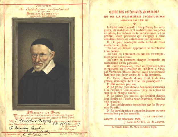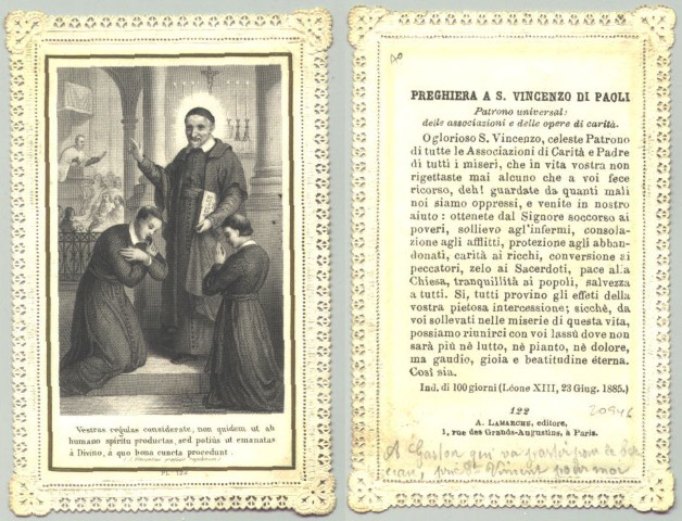 101, Paris postcard, Monaco stamp 102, Spanish text 103, Switzerland 104, French 105, Italy, vignettes 106. Italy, vignettes 107, Italy, vignettes 108, Belgium 109, French, Dutch 110, Young Vincent de Paul and wounded soldier 111, Taking chains of a prisoner 112, Vincent de Paul with orphans 113, Vincent de Paul and flood victims 114 115, Dutch or Belgian 116 117, Italian 118 119 120 121, German 122, German 123, France, embossed 124, France, embossed 125, France, Louis XIII 126, France 127, France 128, Dutch 129, France, with postage stamp 130, French 131, France, embossed 132, France, embossed 133, France, embossed 134, France, embossed 135, France 136, France, Jouarre 137, France, Sacred Heart 138, France 139, France, lace 140, France, embossed 141-2 142-3 143-4 144-5 145-6 146-7 147-8 148-9 149-10 150, Belgium 151, English 152, France 153, Belgium 154, France, 1960, tercentenary card 155, France 156, France, embossed 157, France 158, France, retreat souvenir, 1902 159, France 160, Canada, 1950 161, Canada, 1958 162, Canada, 1972 163, France, embossed 164, France 165, France, embossed 166, France, lace 167, France 168, France, embossed 169, France, embossed 170, France, embossed 171, France, embossed 172, France, embossed 173, France 174, English 175, France 176, France, embossed 177, France, embossed 178, France, embossed 179, France, embossed 180, Spanish 181, France, embossed 182, France, embossed 183, France, embossed 184, France 185, France, embossed 186, France 187, France, embossed 188, France 189, France, embossed 190, Italy, Milan 191, German, embossed 192, France, embossed 193, France 194, France 195, Spain 196, Netherlands 197, Belgium 198, French 199, Germany 200, France